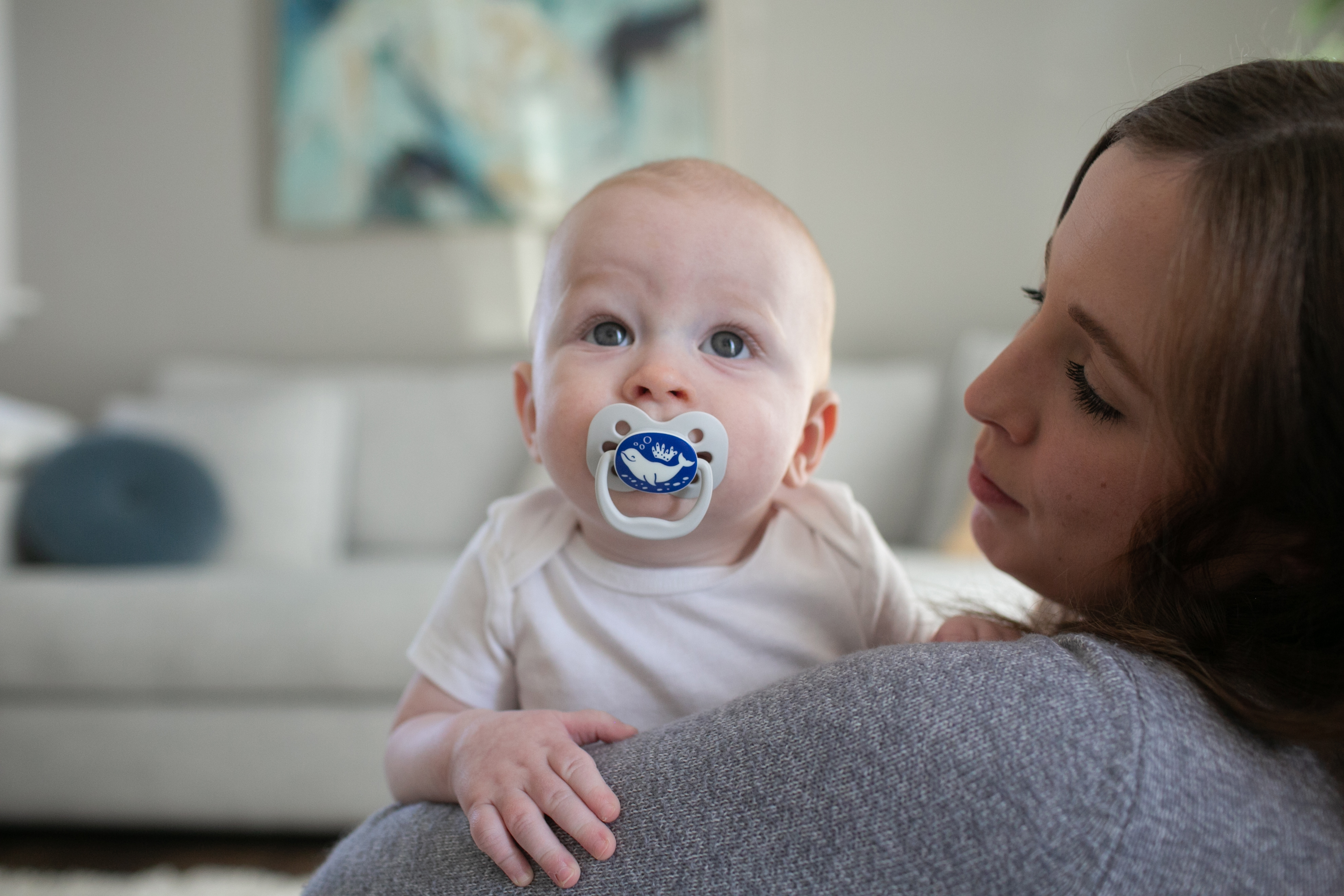 - Ty ngậm sẽ phát sáng trong bóng tối giúp mẹ dễ dàng tìm thấy khi cần
