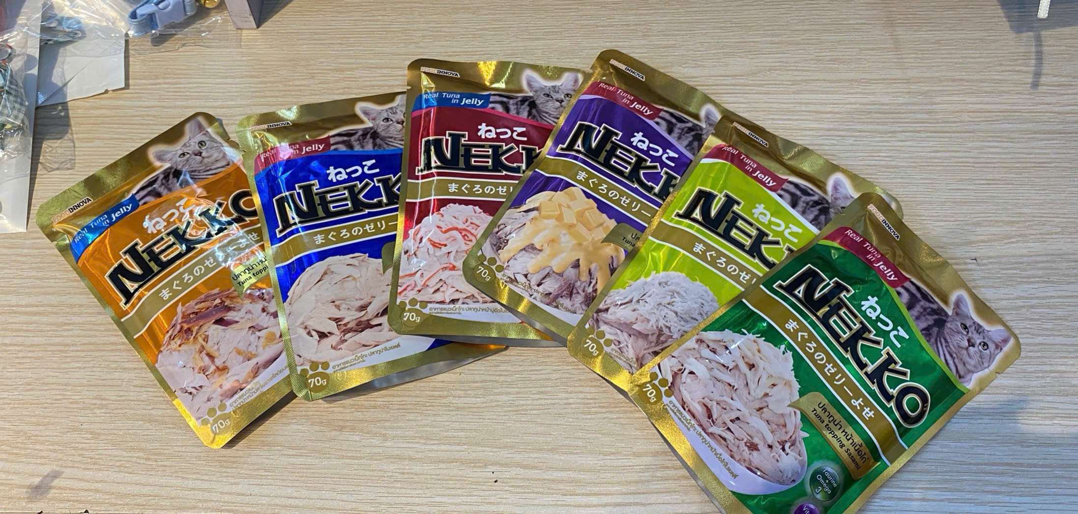 Phần lớn các bạn mèo đều thích hương vị pate Nekko Pate Nekko được làm từ 100% thịt, cá chất lượng cao và đã được lựa chọn là tốt. Những chú mèo rất thích hương vị của cá, thịt và phô mai trong các loại pate Nekko. Sản phẩm chứa các vitamin và khoáng chất cần thiết cho mèo yêu quý của bạn. Công dụng & Ưu điểm: - Nuôi dưỡng làn da và duy trì một lớp lông mượt cho mèo. - Nuôi dưỡng mắt và hệ thần kinh của mèo - Tăng cường vitamin E và khoáng chất. Prebiotic giúp tốt hệ thống tiêu hóa. - Omega 3 giúp cải thiện sự thèm ăn, hỗ trợ não, mắt và hệ miễn dịch. - Không có thịt nhân tạo. Không chất bảo quản - Đạt chất lượng: ISO9001, HACCP, GMP, IFS, EFIS ------------------ Có 4 loại: -Kitten dành cho mèo con từ 1 tháng tuổi trở lên -Jelly dạng thạch dành cho mèo trưởng thành -Gravy dạng sốt dành cho mèo trưởng thành -Senior 7+ cao cấp thích hợp cho mèo trên 7 tuổi Xuất xứ: Thái Lan Khối lượng tịnh: 70g Bảo quản: nơi khô ráo, thoáng mát, tránh ánh nắng trực tiếp --------------------------------------- Nhà sản xuất: Unicord Public Co., Ltd Địa chỉ: 39/3 Moo 8, Setthakij 1 Road, Thasai, Mueang Samut Sakhon, Samut Sakhon, Thailand. #nekko #patenekko #pate #patemeo #mèo #thứcănmèo #catfood #pate70g #nekkocat #thứcănchomèo #đồdùngchomèo #sảnphẩmcủamèo #thựcphẩmchomèo #patecaocấp #patemèothái