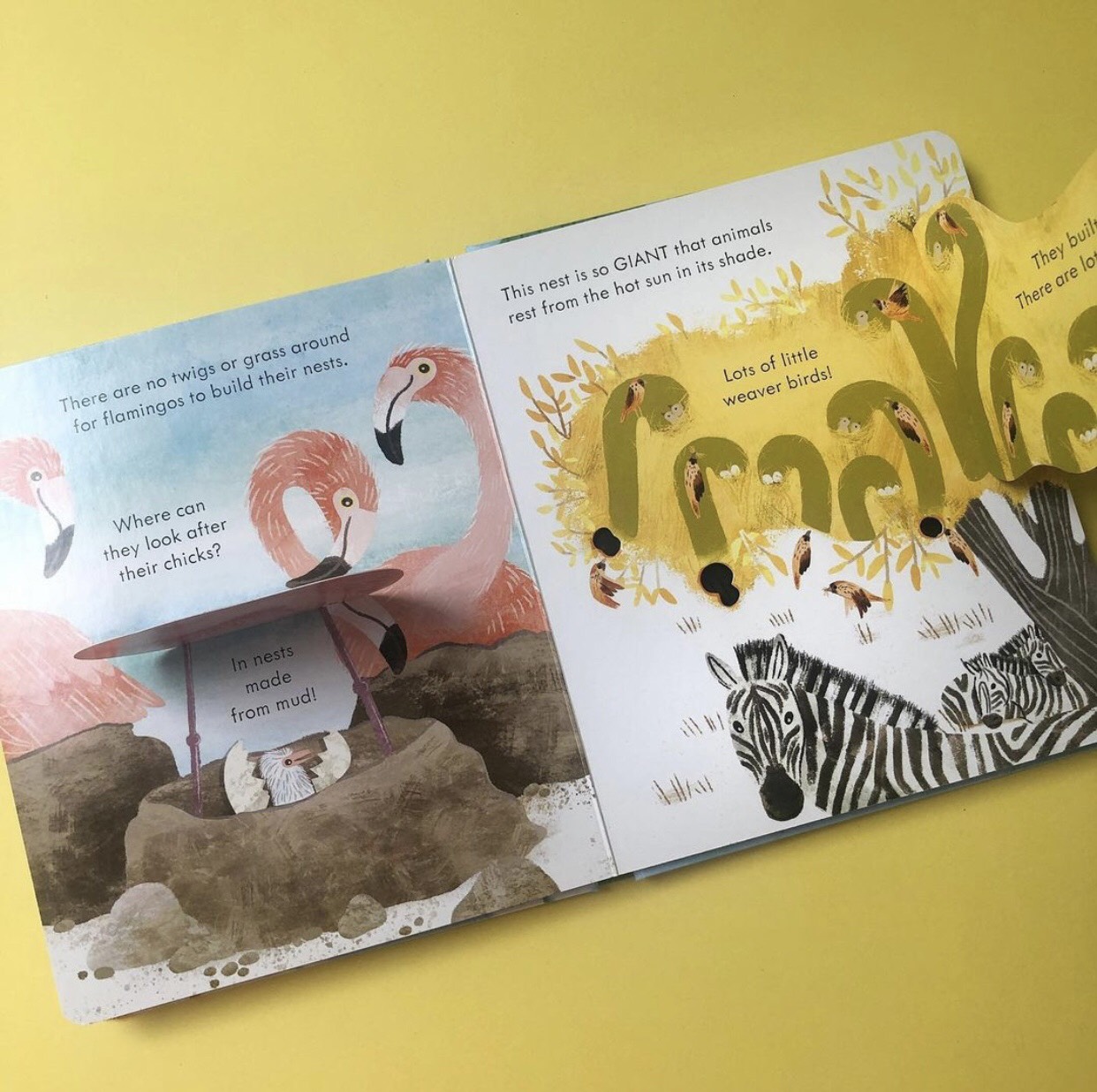 Mua tại TiktokPeep inside a bird's nest to see her precious eggs nestled there. Lift a flap to see them hatch, and find out how a bird takes care of its young. Discover all kinds of different nests and chicks, from teeny-tiny humming birds nests to great big muddy flamingo nests, and even learn how penguins take care of their eggs in the snow without a nest at all .