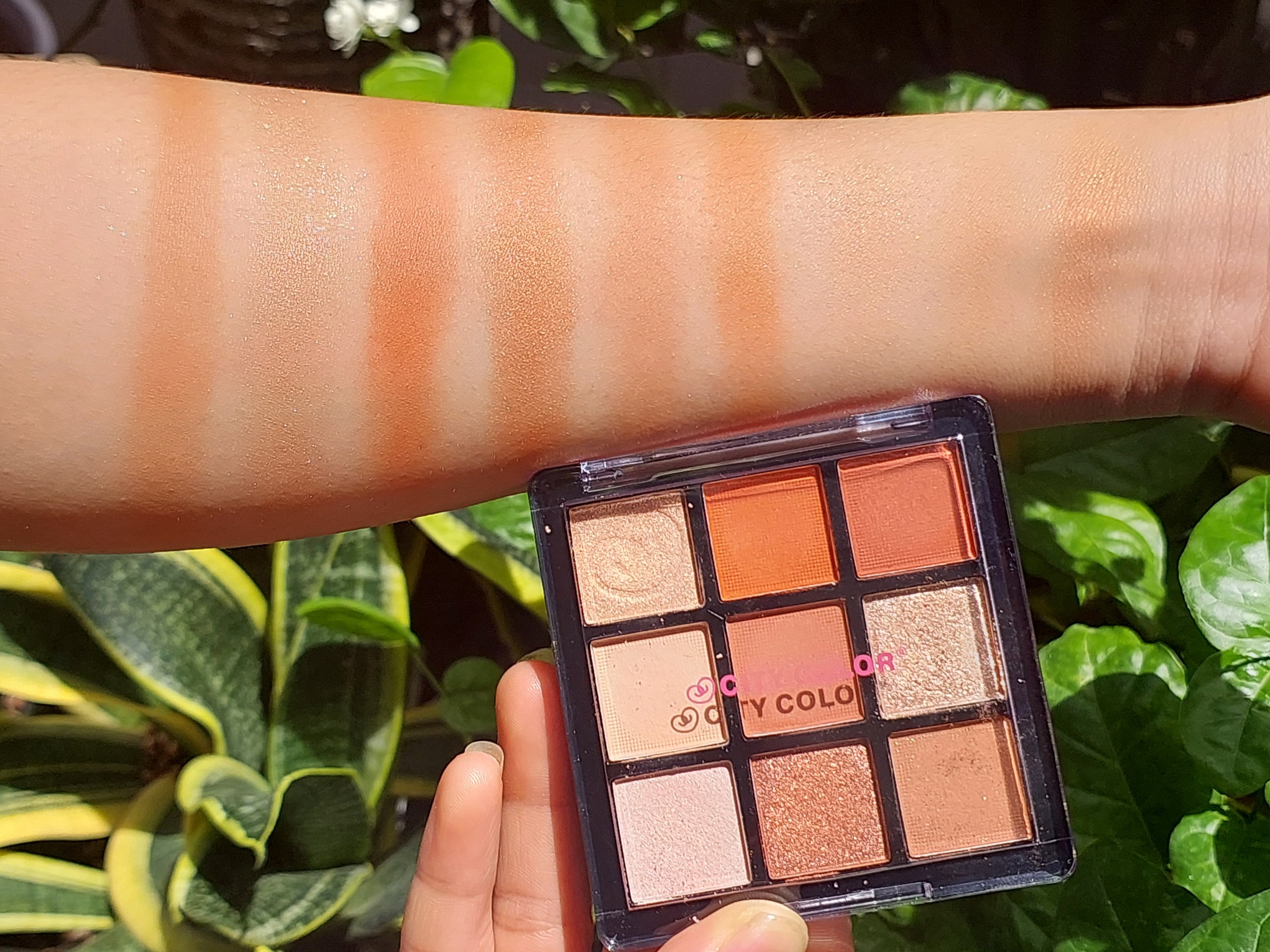 bảng phấn mắt 9 ô của City Color có tên là Spice Me Up Shadow Palette . Bảng phấn bao gồm 9 sắc thái màu mắt khác nhau, từ tông màu nâu nhẹ nhàng đến