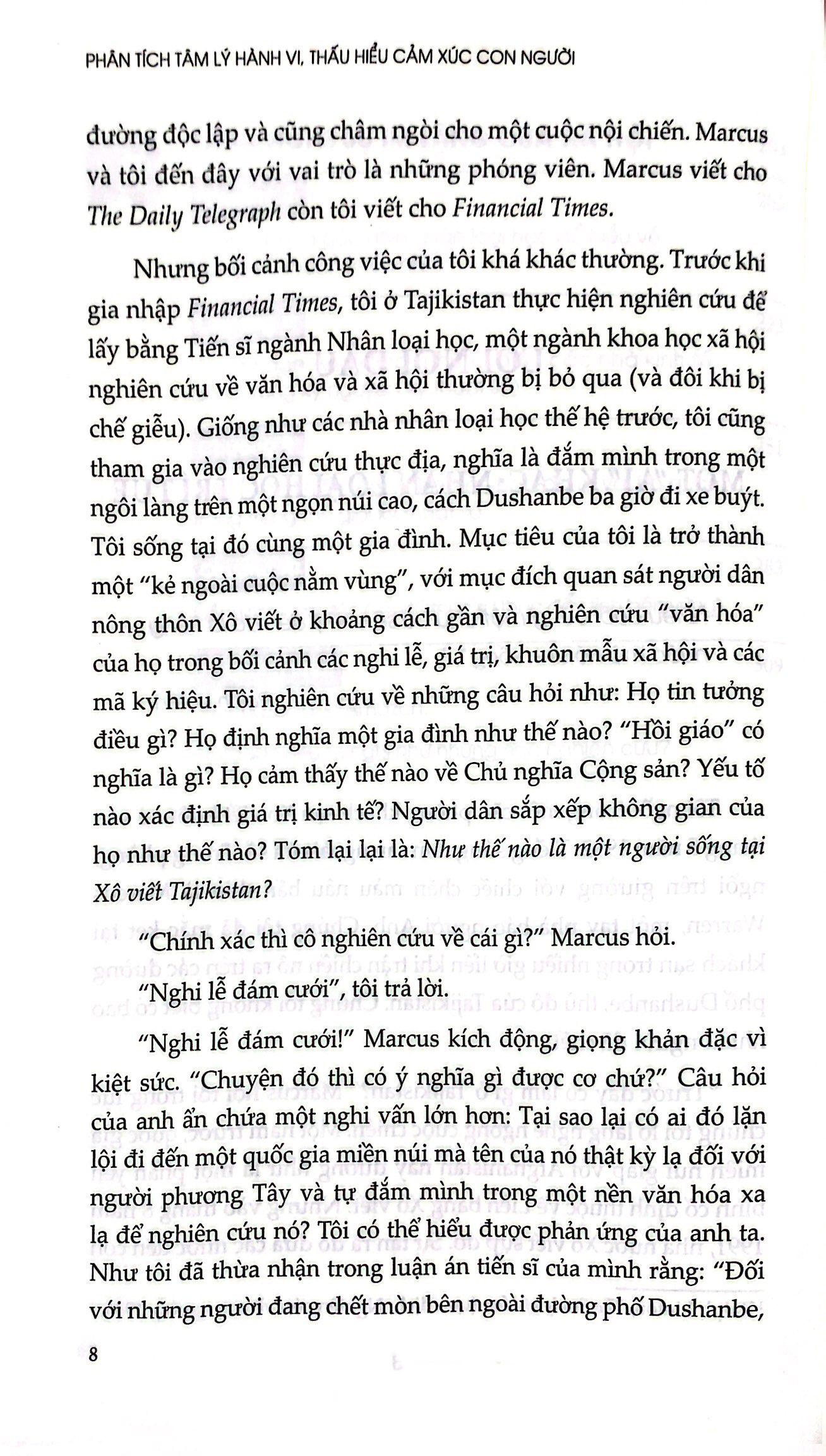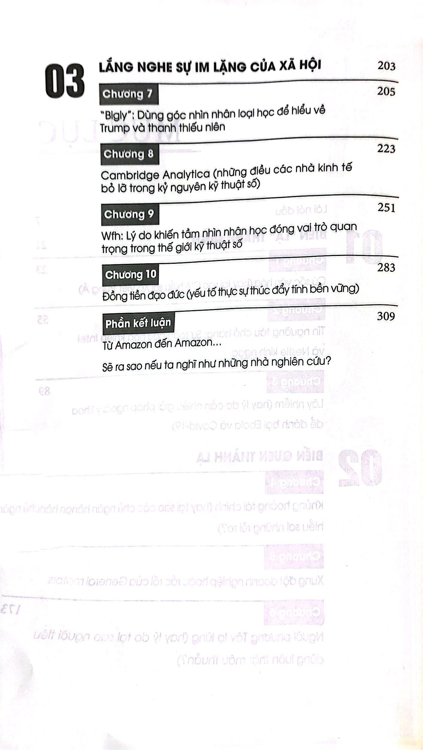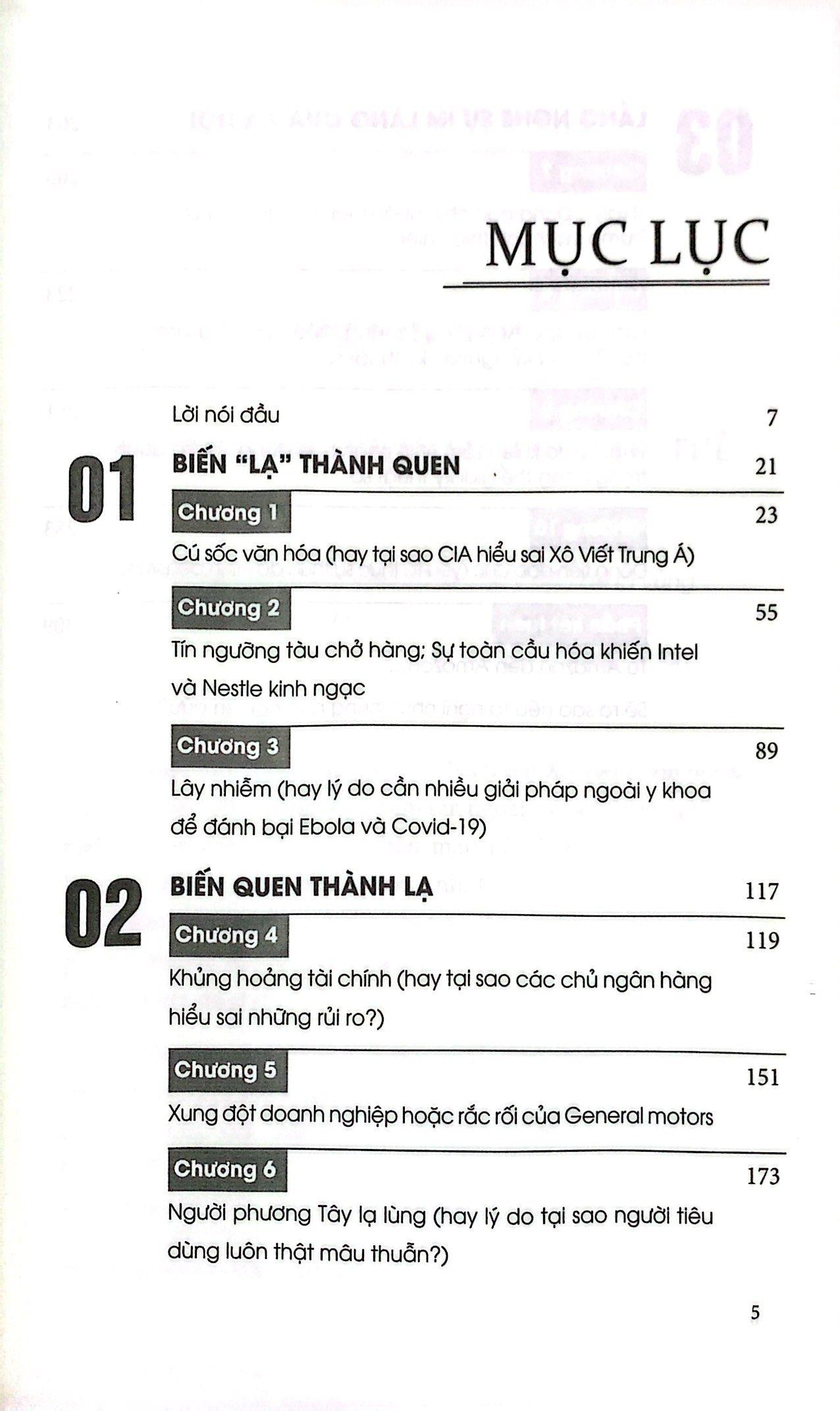 Cuốn sách được chia thành ba phần, lặp lại ba nguyên tắc đã nêu trên: nhu cầu biến “lạ thành quen”; biến “quen thành lạ”; và lắng nghe sự im lặng của xã hội. Để trình bày điểm đầu tiên, tôi sẽ kể câu chuyện về Intel và Nestle, cùng với câu chuyện về Covid-19 và Ebola; trong phần thứ hai, tác giả giải thích cách thức mà nhân loại học có thể giúp giải thích về General Motors và một loạt các lĩnh vực tiêu dùng, từ thức ăn cho chó, nhà trông trẻ cho đến tiền hưu trí; trong phần thứ ba, tôi áp dụng các nguyên tắc đã nêu để tìm hiểu về ảnh hưởng của sự im lặng xã hội đến nền kinh tế công nghệ, ngành nghề liên quan đến kỹ thuật số và sự nổi lên của phong trào bền vững.