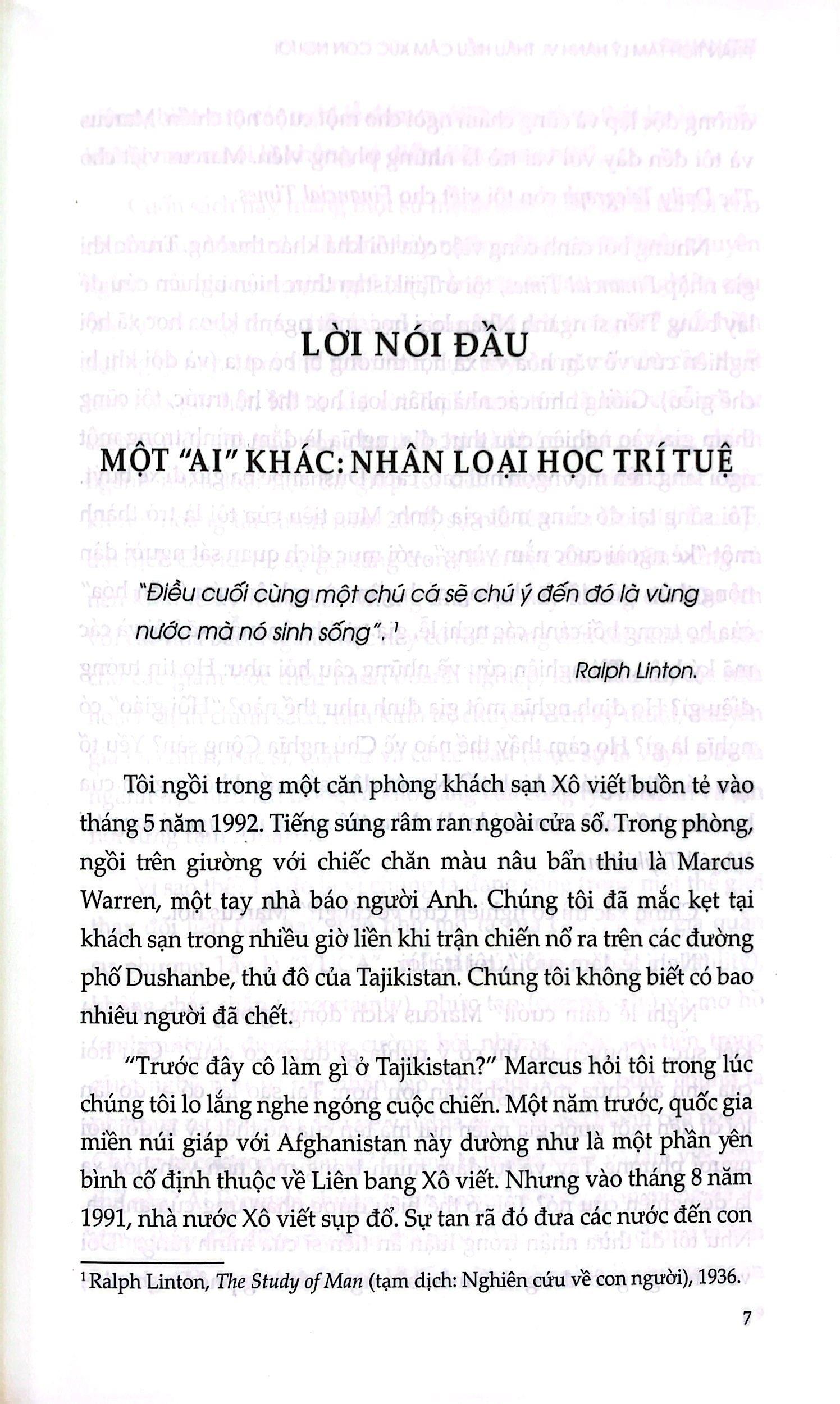 Nhưng điểm mấu chốt ở đây là: Dù bạn dùng bất cứ từ nào để mô tả về sự nghiên cứu tầm nhìn nhân loại học hay tầm nhìn vào những yếu tố xung quanh thì chúng ta vẫn đang cần đến chúng ngay bây giờ. Thế giới của chúng ta đang bị đảo lộn bởi sự toàn cầu hóa, chuyển đổi số, biến đổi khí hậu, bất ổn chính trị, đó là chưa kể đến những đại dịch đang chực chờ. Những cải tiến chẳng hạn như trí tuệ nhân tạo sẽ tăng cường thêm vào sự thay đổi này. Để có thể phát triển và tồn tại, chúng ta cần đến một dạng AI khác – đó chính là trí tuệ nhân loại học. Cuốn sách này sẽ chỉ ra cách để đạt được điều đó.