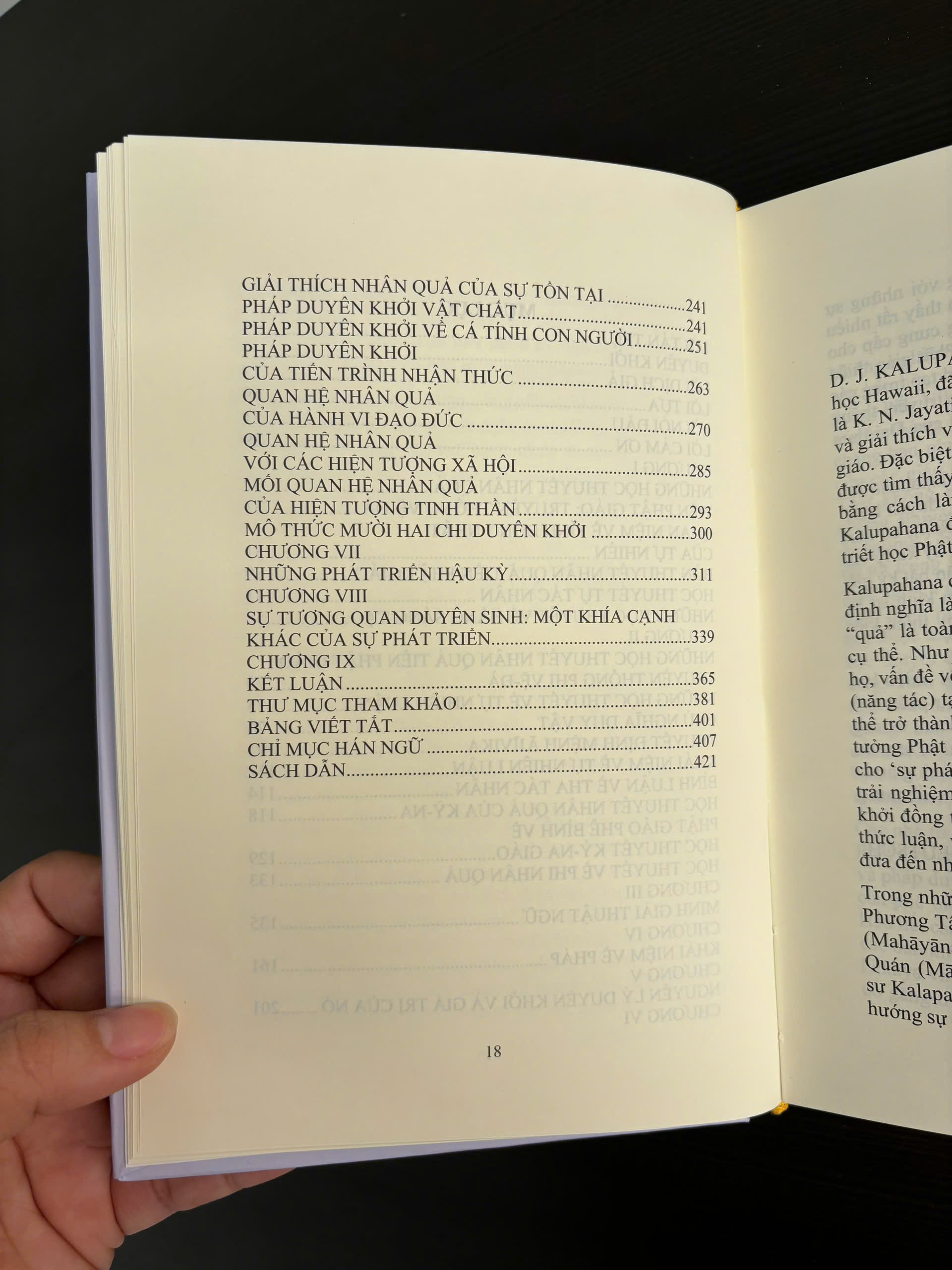 Cơ duyên được tiếp cận tác phẩm này của giáo sư Kalupahana là trong giai đoạn tiến hành luận án tiến sĩ về “Pháp Duyên Khởi trong A-tì-đạt-ma của Hữu Bộ, dịch giả đã tìm thấy tác phẩm này. Chính nó đã cung cấp rất nhiều thông tin bổ ích trên khía cạnh quan điểm pháp Duyên Khởi theo trường phái Thượng toạ bộ và một số bộ phái Phật giáo khác từ các bản kinh Nikāya và A-hàm. Nhận thấy, đây là một công trình nghiên cứu khá thú vị của giáo sư Kalupahana khi ông đã dùng các học thuyết của Vệ đà làm nền tảng để phân tích sáng tỏ nguyên lý Duyên Khởi của Phật giáo một cách vượt trội.