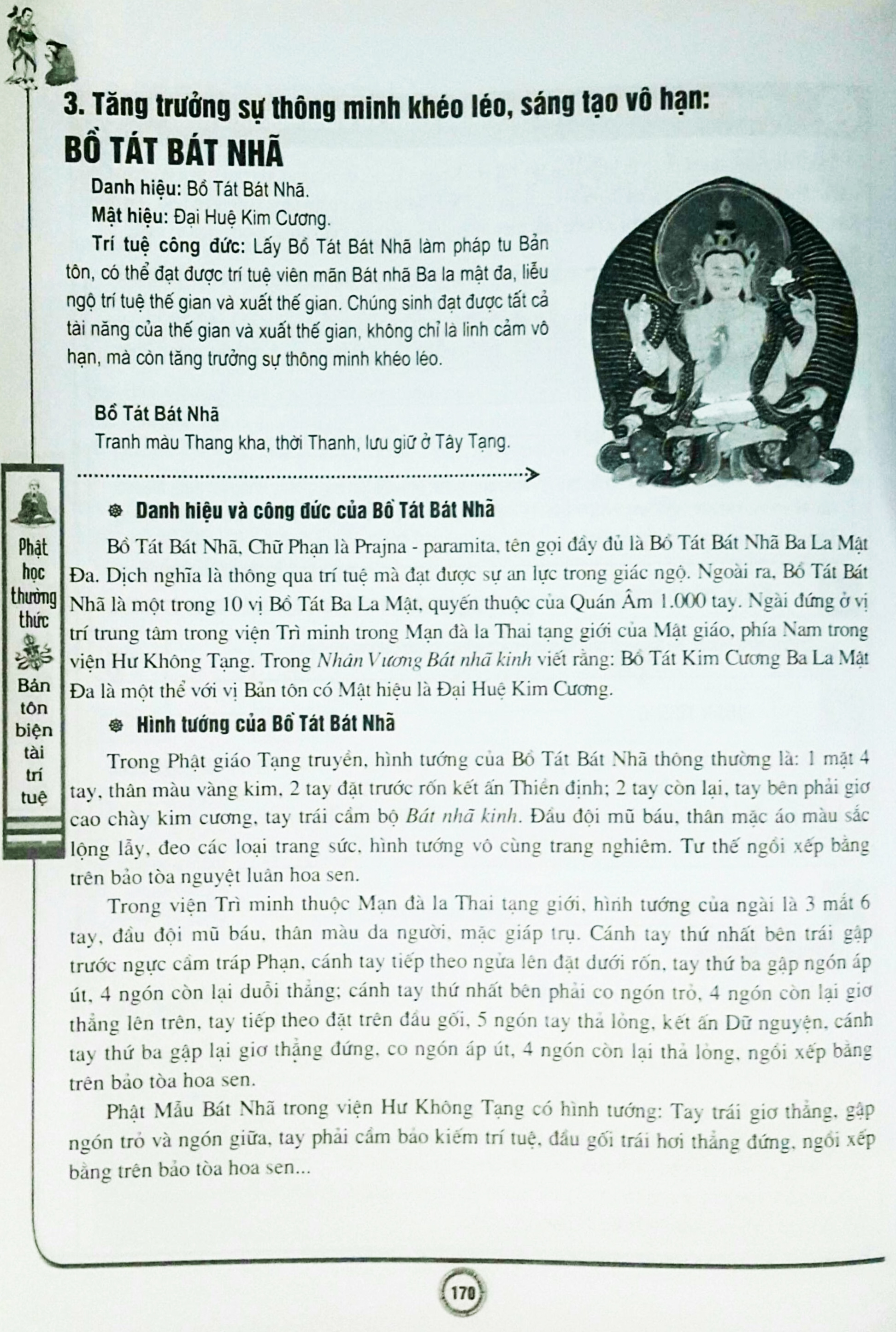 Cuốn sách Pháp môn tăng trưởng trí tuệ - Bản tôn biện tài trí tuệ là một phần trong bộ sách Phật học thường thức. Từ các góc độ cầu tài, tức tai, thủ hộ, tăng trưởng trí tuệ, bộ sách hướng dẫn bạn đọc dần dần tìm hiểu về thế giới chư Phật, Bồ Tát, nắm bắt các vấn đề pháp tướng, thủ ấn, trì vật, chân ngôn... Tất cả các vấn đề này đều là những mệnh đề tương quan của Phật giáo, là các chủ đề lần lượt của từng tập trong bộ sách Phật học thường thức.