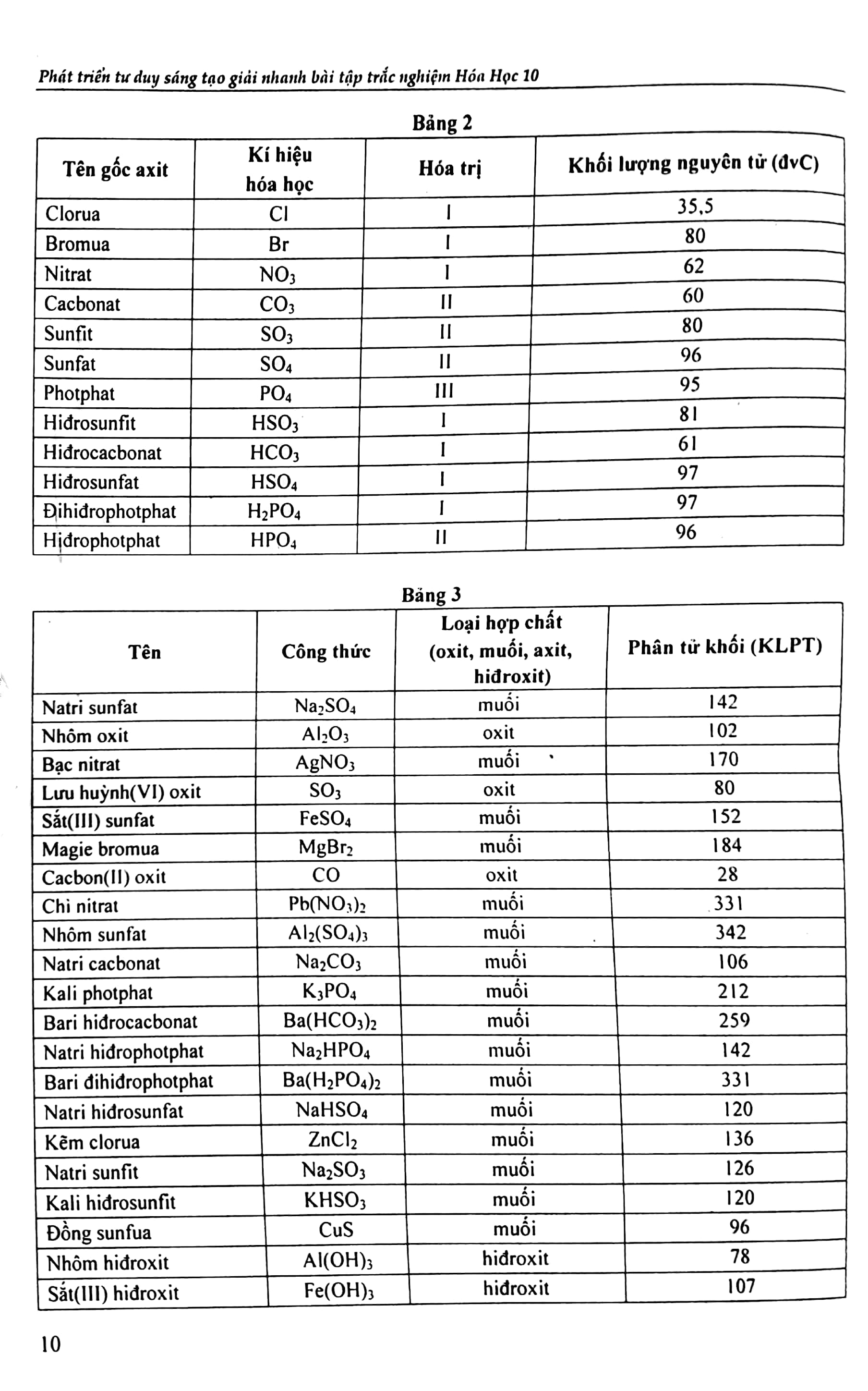 Phần 2: Phát triển tư duy sáng tạo giải nhanh bài tập trắc nghiệm Hóa học 10:
