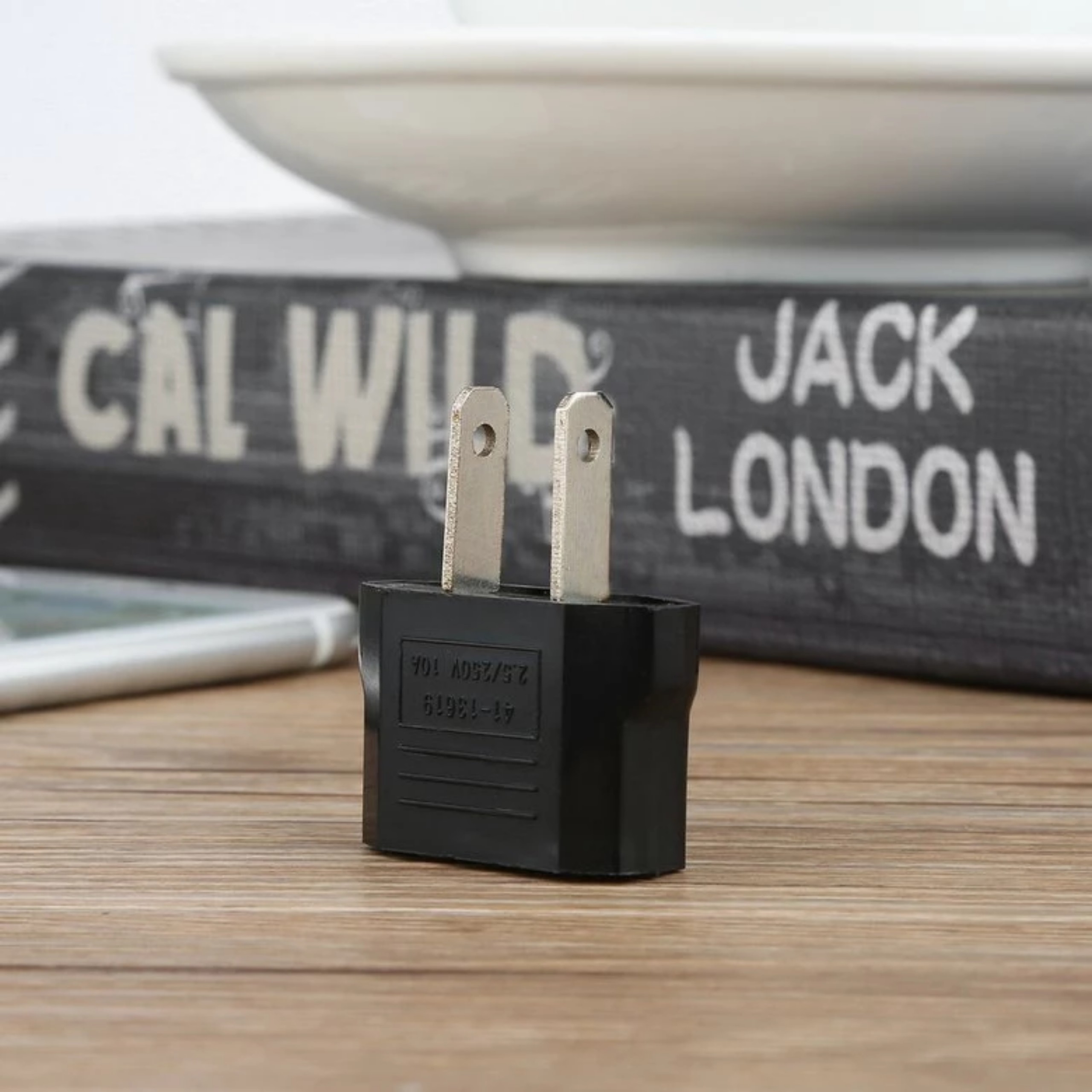 Chuyển đổi phích cắm AC từ Châu Âu (2 chân tròn) sang Mỹ (2 chân dẹt).