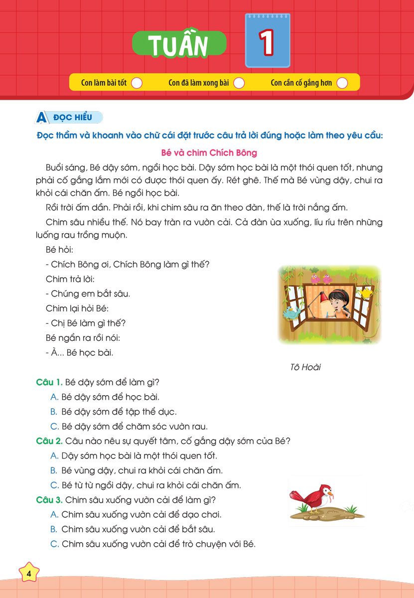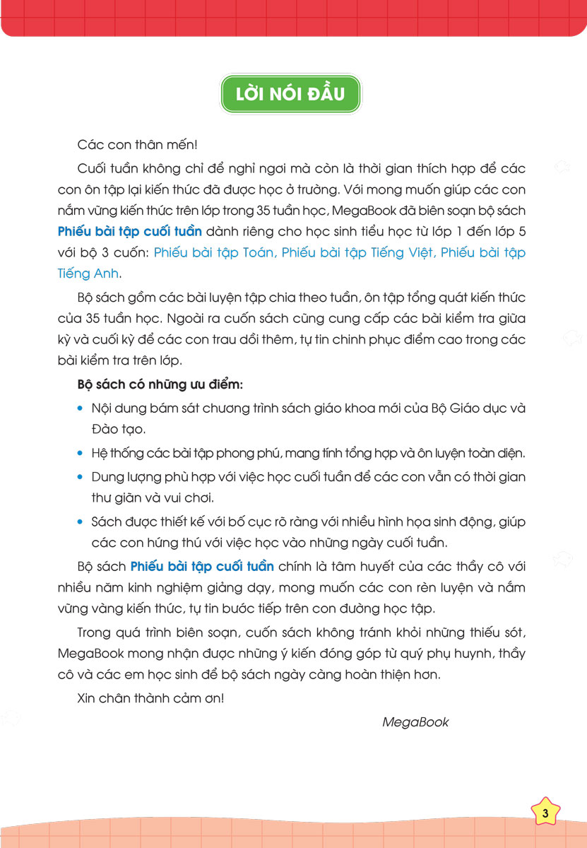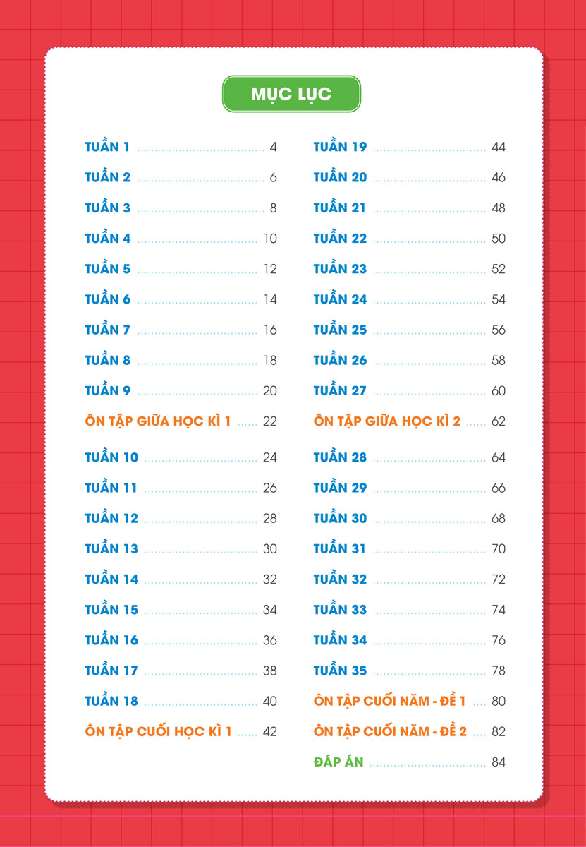 Đặc biệt, sau mỗi kì sẽ có bài ôn tập giữa kì và cuối kì giúp con có tài liệu ôn tập cho các kì kiểm tra. Ngoài ra, phần đáp án phía sau giúp bố mẹ đánh giá năng lực, từ đó có phương pháp ôn luyện phù hợp cho con.