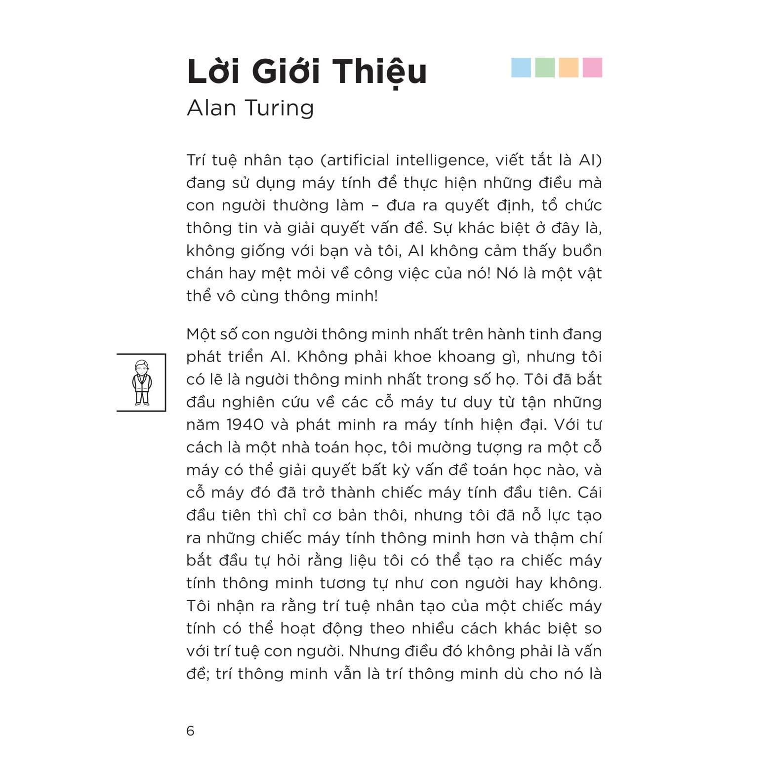 Cuốn sách này sẽ đưa các bạn vào một cuộc hành trình đầy thú vị, gặp gỡ những trí tuệ nhân tạo (AI) thông minh nhất, từ những cỗ máy cổ xưa đến những siêu máy tính hiện đại. Khám phá cách mà AI hoạt động, làm thế nào chúng giúp chúng ta giải quyết những vấn đề phức tạp và thậm chí còn có cơ hội tưởng tượng mình là một AI. Với cách kể chuyện đơn giản, dễ hiểu và những hình ảnh sinh động, “Trí tuệ nhân tạo – Khi máy tính trở nên thông minh” giúp bạn hiểu rõ hơn về AI và những ứng dụng tuyệt vời của nó trong cuộc sống.