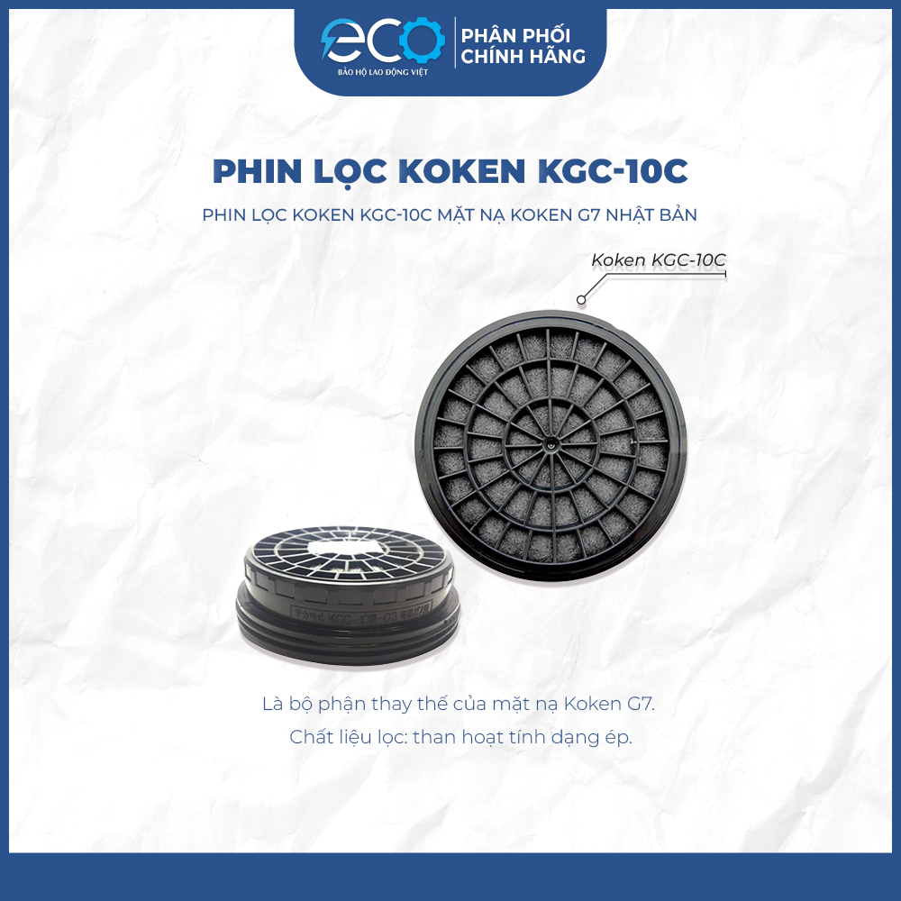 Mua tại TiktokPhin lọc than hoạt tính Koken mã KGC-10C là loại phin lọc chuyên dụng của hãng Koken Nhật Bản, được thiết kế dùng kèm với mặt nạ phòng độc Koken G7, đáp ứng nhu cầu bảo vệ hô hấp trong môi trường độc hại như: Phun PU (Polyurethane): thường dùng trong các ngành sơn, sản xuất nội thất, cách nhiệt, chống thấm… PU có thể phát sinh hơi hóa chất độc hại như isocyanate, cần phin lọc chuyên dụng. Phun xịt thuốc trừ sâu: môi trường nông nghiệp hoặc các lĩnh vực sử dụng hóa chất bảo vệ thực vật, thuốc trừ sâu, diệt cỏ... Phin lọc giúp ngăn chặn hơi hóa chất độc hại xâm nhập vào hệ hô hấp. Thông tin chi tiết phin lọc Koken KGC-10C: