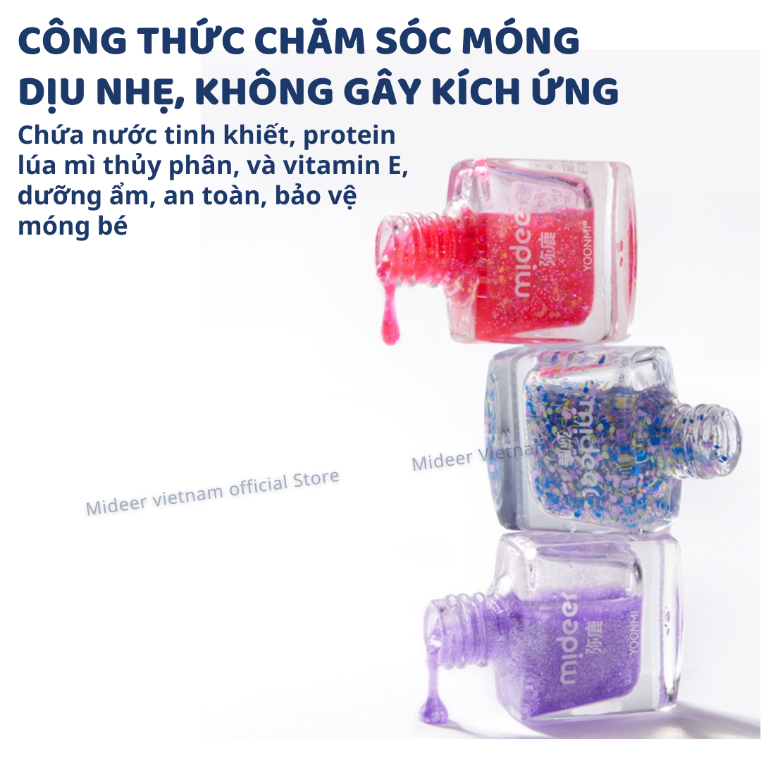 - CÔNG THỨC CHĂM SÓC MÓNG DỊU NHẸ, KHÔNG GÂY KÍCH ỨNG Chứa hàm lượng nước tinh khiết cao, protein lúa mì thủy phân, và vitamin E để dưỡng ẩm, an toàn hơn và bảo vệ móng của bé tốt hơn.