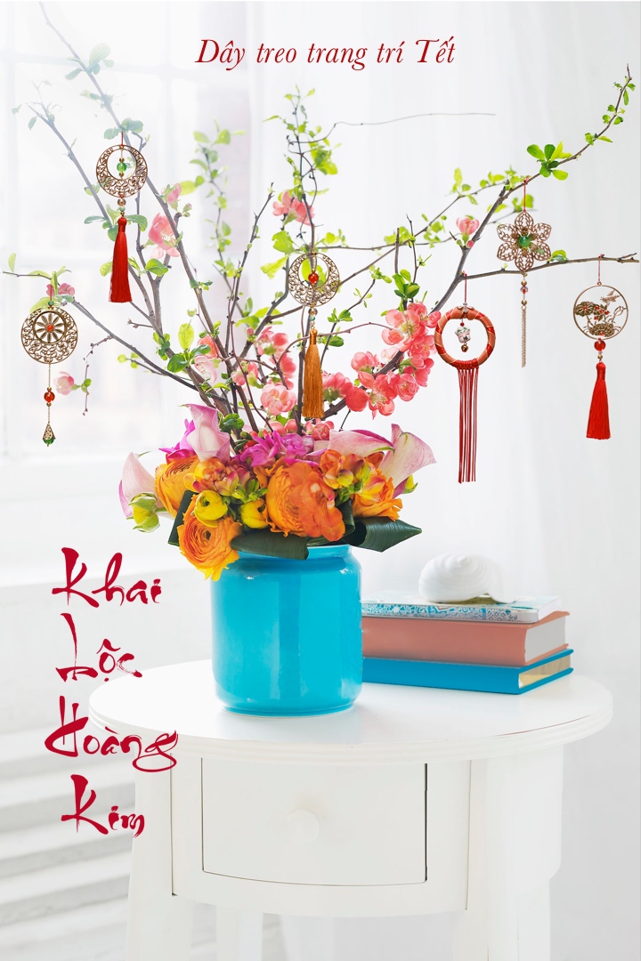 BỘ 4 DÂY LIỄNG TRANG TRÍ TẾT  Thấy hoa mai, hoa đào là thấy Tết. Cây hoa Tết nhà bạn năm nay sẽ đặc biệt hơn khi được trang trí bằng bộ dây treo Khai