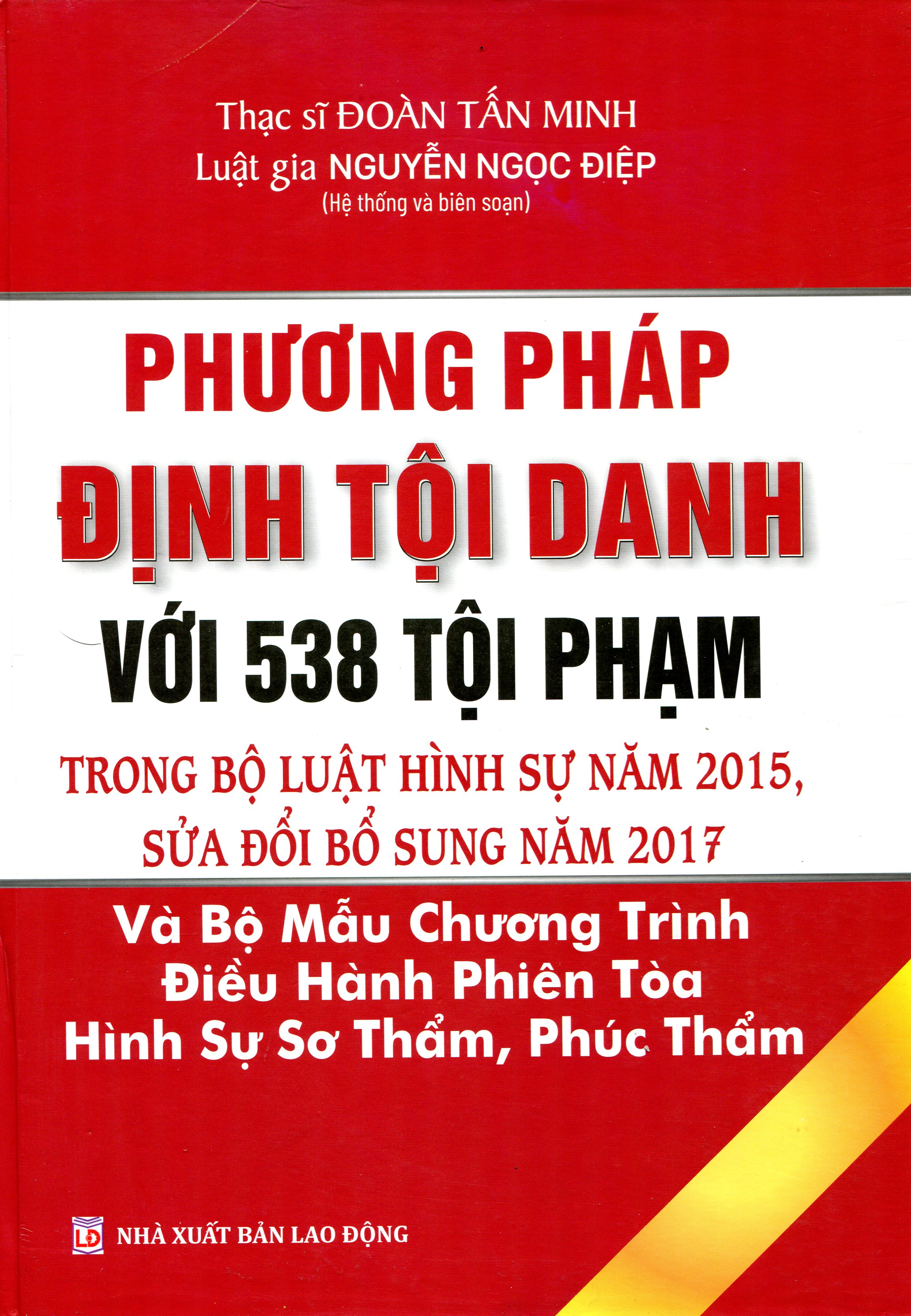 Với tinh thần đó, nhằm đáp ứng kịp thời nhu cầu tìm hiểu, nghiên cứu, áp dụng pháp luật hình sự của bạn đọc nói chung và của những người làm công tác pháp luật nói riêng, góp phần nâng cao hiệu quả của hoạt động định tội danh trong hoạt động điều tra, truy tố và xét xử vụ án hình sự, Nhà xuất bản Lao động cho xuất bản cuốn sách: “Phương pháp định tội danh với 538 tội danh trong Bộ luật Hình sự năm 2015, được sửa đổi, bổ sung năm 2017” do thạc sỹ luật Đoàn Tấn Minh và Luật gia Nguyễn Ngọc Điệp là những chuyên gia nghiên cứu pháp luật hình sự biên soạn.