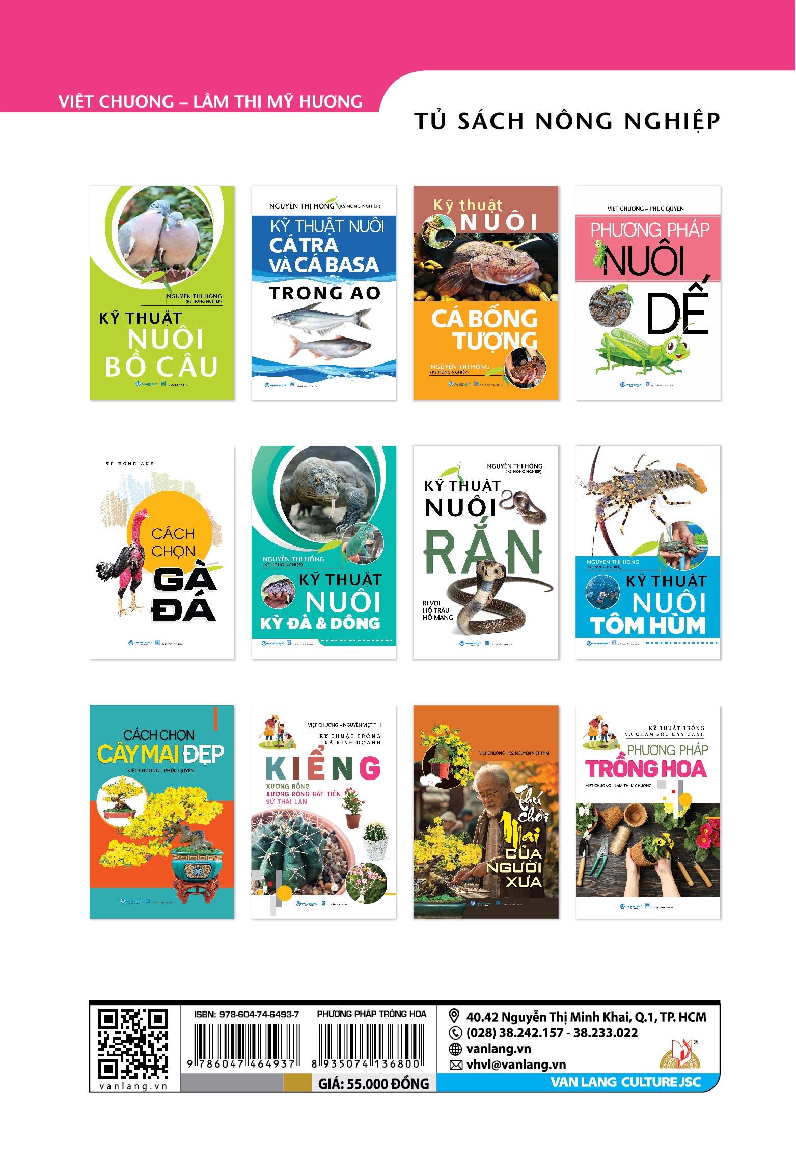 Phương Pháp Trồng Hoa giới thiệu đến bạn đọc kĩ thuật trồng và chăm sóc một số loại hoa: hoa mai, hoa anh đào, hoa cúc, hoa vạn thọ, hoa huệ, hoa hồng, hoa giấy và hoa glaieul.