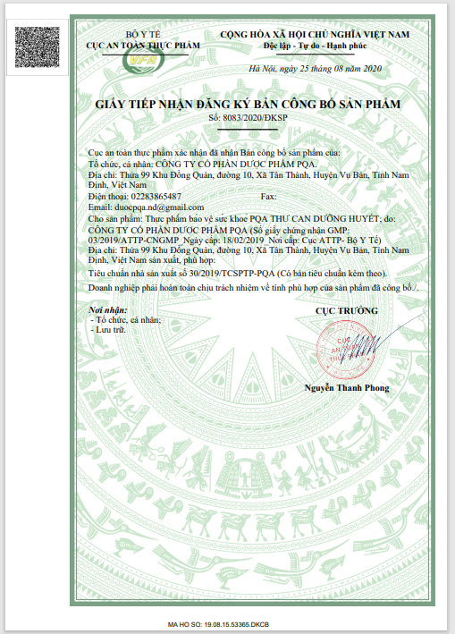 THÔNG TIN PQA THƯ CAN DƯỠNG HUYẾT
