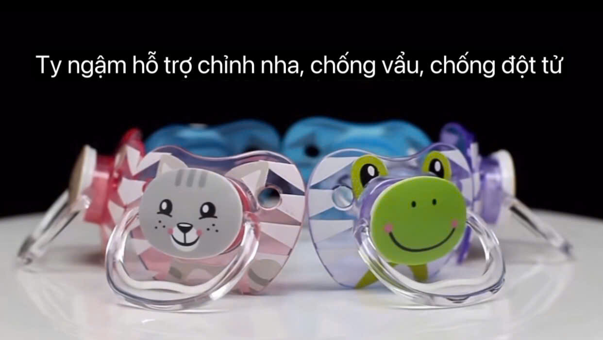 - Nhiều khe hở trên mặt cong cho phép không khí lưu thông để giảm thiểu khả năng bé thiếu dưỡng khí, chống đột tử khi bé ngậm trong lúc ngủ ( nước bọt sẽ đi từ khe hở xuống cuống họng, làm cho bé nuốt nước bọt, giúp duy trì được cơ chế đường hô hấp )