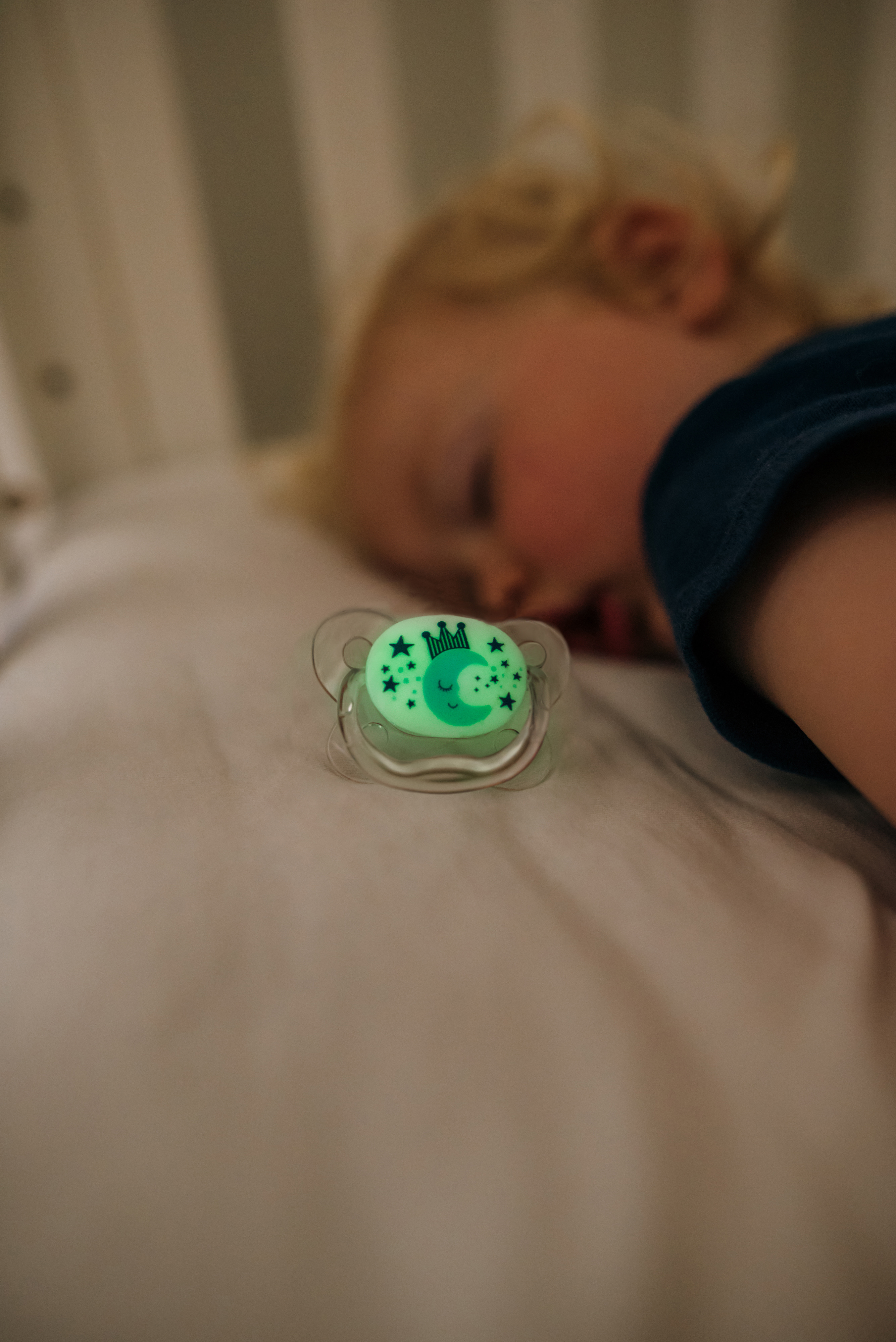 - Ty ngậm sẽ phát sáng trong bóng tối giúp mẹ dễ dàng tìm thấy khi cần