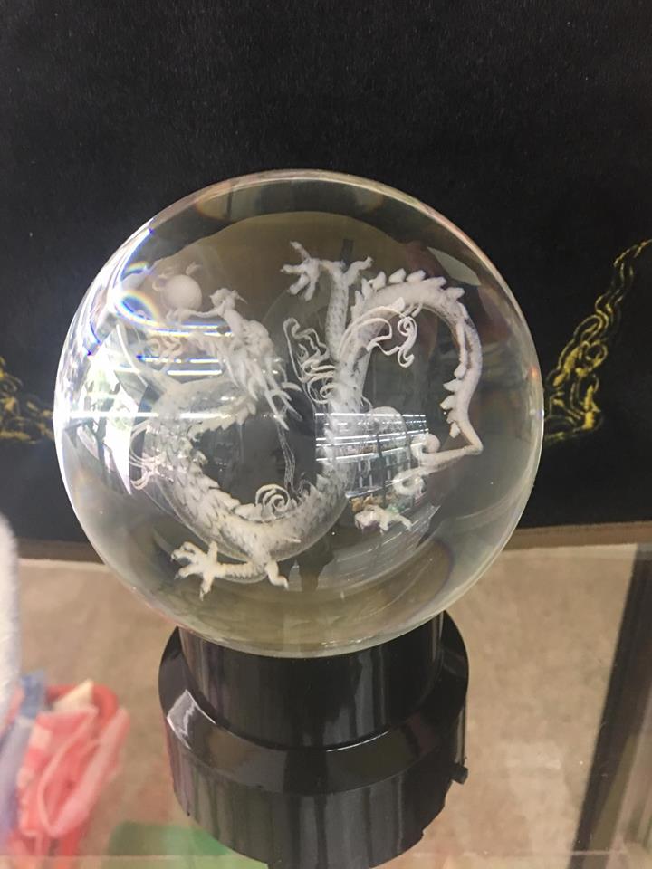 ✨Quả cầu Pha Lê phong thủy chạm âm 6D khắc hình Rồng - Đường kính 8cm