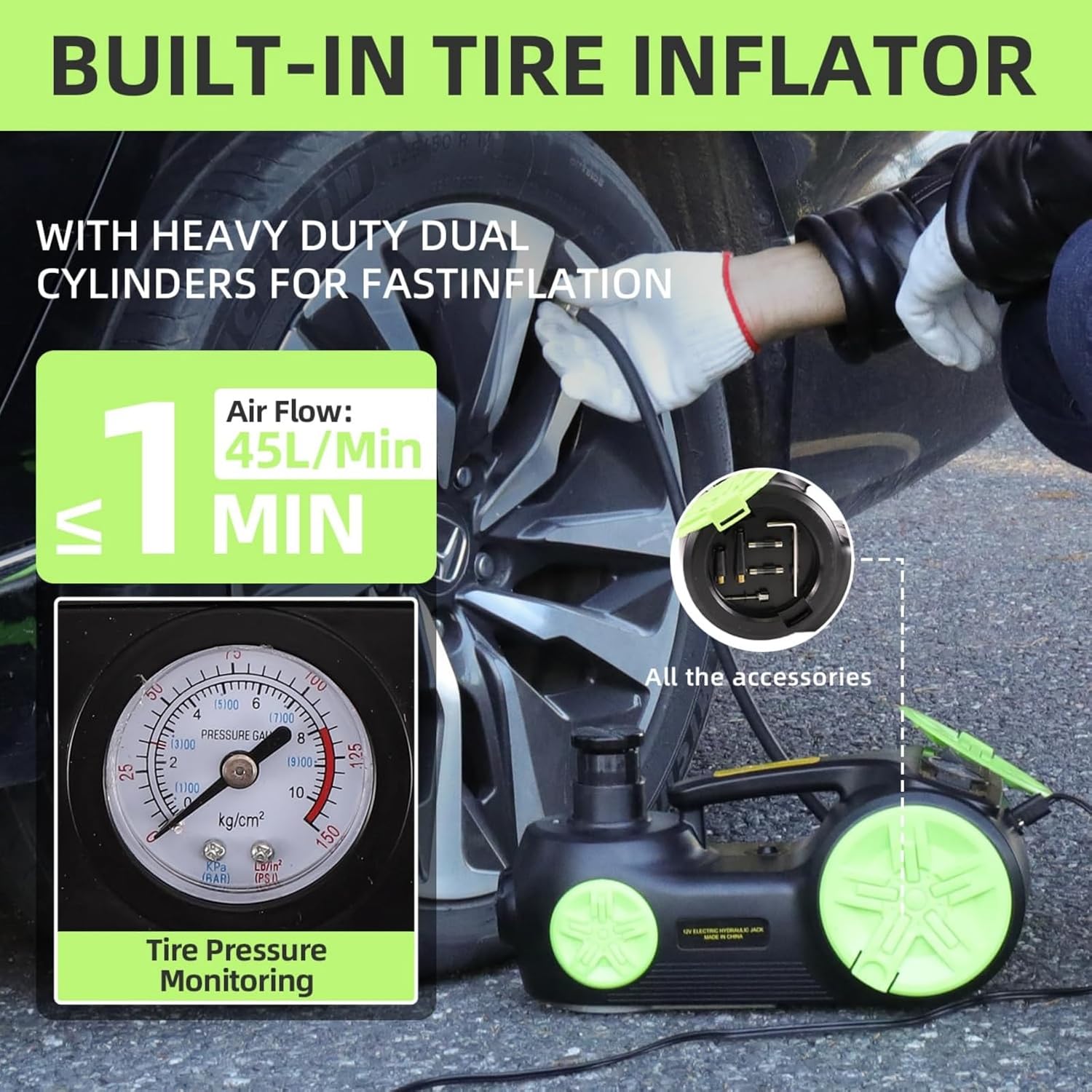 Bộ nâng kích gầm điện, kiêm máy bơm lốp và máy siết ốc ô tô đa năng 3 trong 1