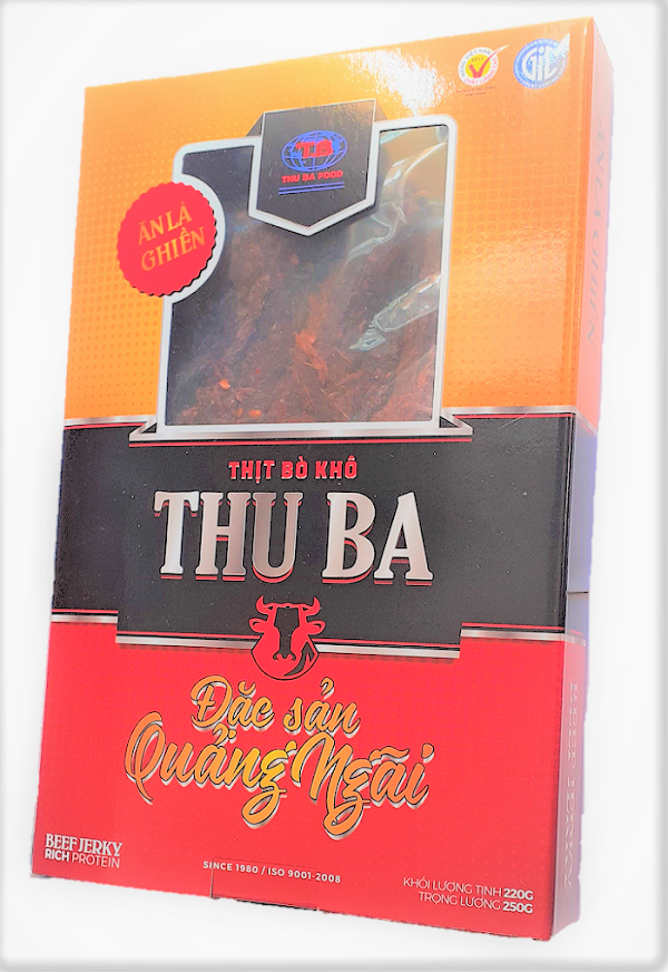BÒ KHÔ THU BA là món đặc sản Quảng Ngãi, đạt tiêu chuẩn ISO 9001:2015 và là Hàng Việt Nam Chất Lượng Cao do Người tiêu dùng bình chọn 2017, 2018 và 2019.