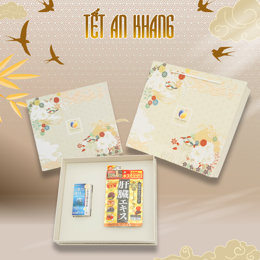 Combo FUJI Tết An Khang - Viên uống giải rượu Fine Japan tăng cường chức năng gan 90 viên - Viên Uống Bạch Quả Ginkgo Fine Japan Hỗ Trợ Chức Năng Não Hộp 18g (90