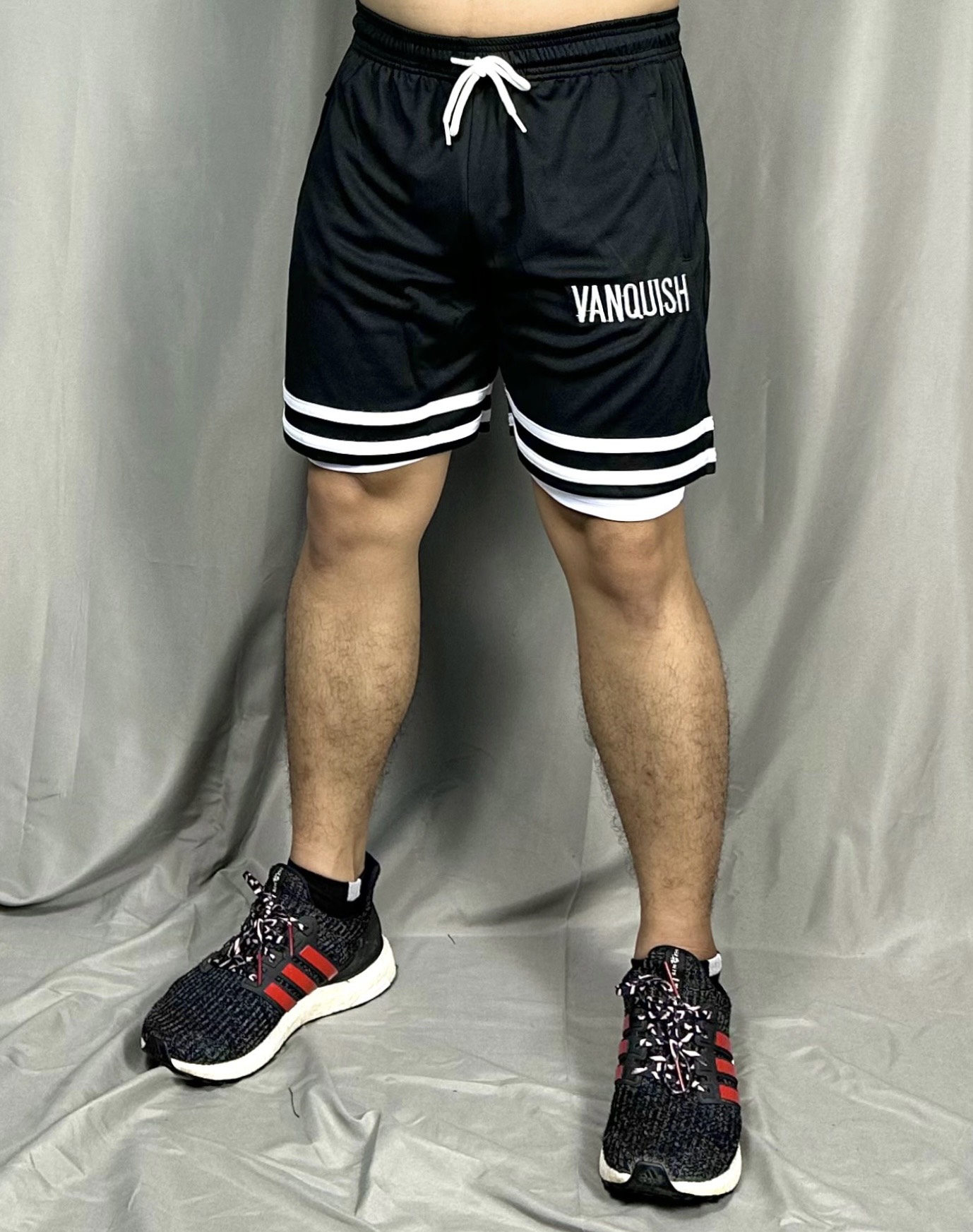 Quần short 2 lớp dù thun nam phối áo tanktop thể thao