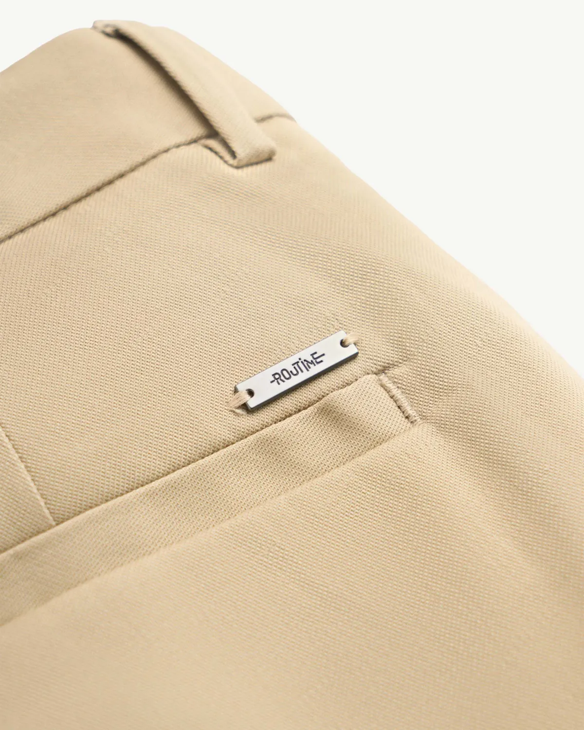 Quần kaki nam đính nhãn kim loại Form Slim cropped - RT 10S25PCA002 | ROUTINE CÀ MAU Đặc điểm nổi bật Form : Slim cropped Fabric : Cotton Spandex Gender: Nam Collection: Essential 25 Sản