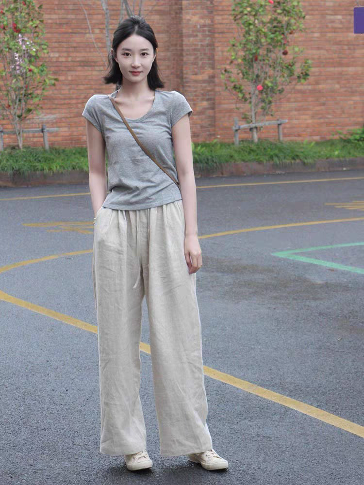 THÔNG TIN SẢN PHẨM: - Sản phẩm: Quần dài nữ - Chất liệu: Linen - Đặc điểm: Ống rộng, Đũng ngắn, Lưng thun - Kích thước: M, L, XL, 2XL - Màu sắc: Trắng,Đen,Be,Muối