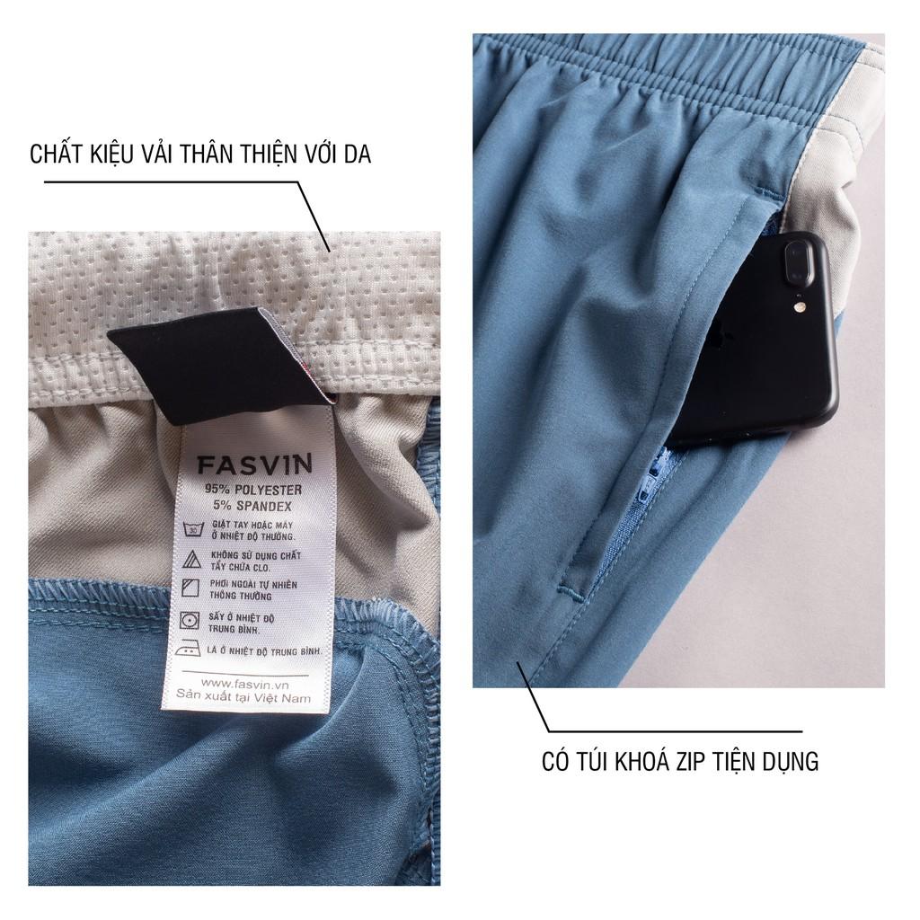 => Quần đùi nam ngắn chạy bộ FASVIN vải Dù Gió nhẹ mát có khóa túi tiện dụng thể thao hay mặc nhà được sản xuất trong nhà máy của FASVIN tại Việt Nam. Với