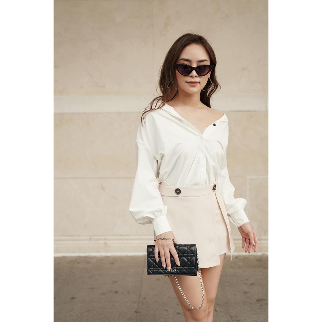 ✨Quần giả váy cúc kim loại màu nude 2NDDATE ASK009N