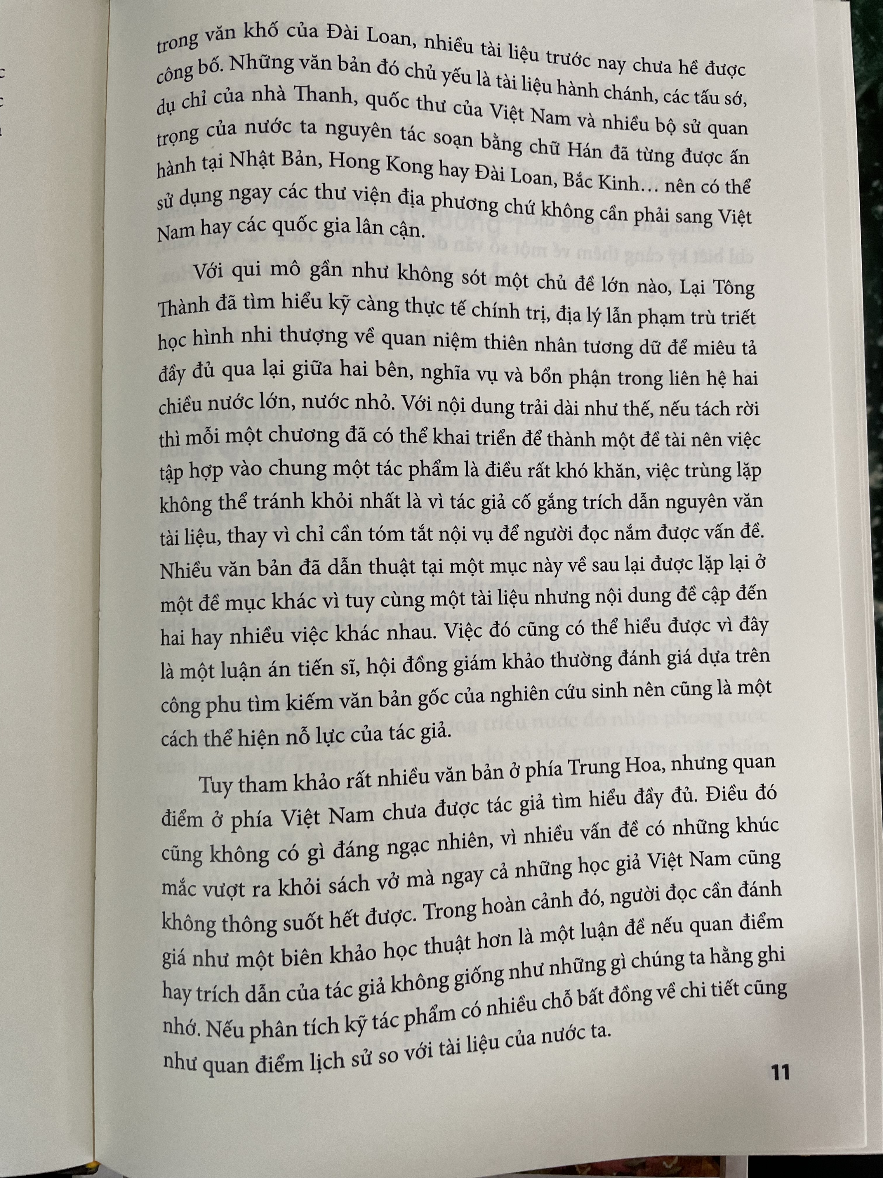 QUAN HỆ VIỆT NAM - TRUNG HOA DƯỚI TRIỀU THANH Tác giả: Lại Tông Thành Dịch và giới thiệu: Nguyễn Duy Chính Giao thiệp giữa Việt Nam và Trung Hoa dưới triều Thanh là một tiến trình đầy phức tạp. Nhà Thanh kế thừa các triều đại trước và tiếp tục chính sách ki mi để phát huy vai trò thượng quốc theo hệ thống tông chủ - phiên thuộc mà nước ta là một vệ tinh, nói theo cách của họ thì là phên giậu ở phương Nam, che chắn cho thiên triều ở phía Bắc. Trong hơn hai thế kỷ (1644 - 1911) Trung Hoa chỉ có một triều đại, thì Việt Nam lại trải qua đến ba bốn dòng họ (Lê, Tây Sơn, Nguyễn), lên xuống thất thường lúc nào cũng có những khúc mắc phải giải quyết. Từ giữa thế kỷ XVII và hầu hết thế kỷ XVIII, nhà Thanh trải qua bốn đời vua: Thuận Trị, Khang Hi, Ung Chính, Càn Long tương đối ổn định và được các sử gia đánh giá là một thời “thịnh thể”. Trong khi đó, về phía nước ta, ngay từ cuối đời Minh đã có nhiều bất ổn, nhiều thế lực phân tranh, luôn luôn có hơn một dòng họ nắm giữ quyền bính. Họ Mạc ở phía Bắc, họ Lê ở giữa còn họ Nguyễn ở phía Nam. Ngay trong khu vực được coi như chính thống, tuy vua Lê giữ ngai vàng nhưng thực quyền ở trong tay chúa Trịnh và trong nhiều thời kỳ, những đám giặc lớn nổi lên cát cứ một phương nên trên thực tế nước ta không mấy khi “giang sơn thu về một mối”. Sau khi nhà Lê mất, triều đại Tây Sơn tuy ngắn ngủi nhưng việc giao thiệp với Trung Hoa lại huy hoàng, phần lớn không hẳn vì nước ta oai hùng mà vì rơi vào một vị thế “họ cầu đến ta nên sử sách của cả hai bên không khỏi viết quá lố lên một chút. Sang thế kỷ XIX, nhà Thanh có nhiều vấn đề nội trị ngoại giao, nhất là từ đời Đạo Quang, bên ngoài họ phải đối phó với liệt cường Âu châu xâm chiếm để mở những cửa biển vùng duyên hải, trong nước lại có những cuộc nổi dậy làm rúng động triều đình, hao tốn rất nhiều mới bình định được. Về phía nước ta, triều đình Huế cũng có những khó khăn không kém. Sau mấy lần bắn phá ở Đà Nẵng và Thuận An, chiến thuyền Pháp tiến chiếm ba tỉnh miền Đông Nam Kỳ và sau đó không lâu chiếm luôn ba tỉnh miền Tây, biến toàn thể Lục tỉnh thành thuộc địa của họ. Sự lên xuống của các triều đại ít nhiều ảnh hưởng đến quan hệ giữa nước ta và Trung Hoa, nhưng trong hệ thống trật tự thiên hạ của phương Đông, những tương tác vẫn tiếp tục được thể hiện như định lệ hàng ngàn năm không có gì thay đổi. Hầu như cả Trung Hoa lẫn Việt Nam đều không bên nào muốn đề cập khó khăn riêng của mình mà vẫn giả vờ coi như chỉ là vấn nạn nhất thời không đáng lý đến. Tác phẩm (1644-1885) [Thanh Việt quan hệ nghiên cứu - dĩ mậu dịch dữ biên vụ vi thám thảo trung tâm (1644 - 1885)] của Lại Tông Thành là một công trình qui mô nghiên cứu cụ thể trong liên hệ tông phiên, một mặt trên thực tế lịch sử môi răng của hai nước liền kề, mặt khác những va chạm không thể tránh khỏi trong quyền lợi thương mại, đất đai vùng biên giới. Tác giả cũng nghiên cứu rất kỹ về những tương trợ trên biển hay đất liền khi có thiên tai, loạn lạc. Nghiên cứu này nguyên là luận án tiến sĩ của tác giả trình năm 2006 ở Đại học Quốc lập Sư phạm Đài Loan, do GS. Trang Cát Phát bảo trợ. Cho tới thời điểm đó, ông Lại đã tham khảo rất nhiều tài liệu trong văn khố của Đài Loan, nhiều tài liệu trước nay chưa hề được công bố. Những văn bản đó chủ yếu là tài liệu hành chánh, các tấu sớ, dụ chỉ của nhà Thanh, quốc thư của Việt Nam và nhiều bộ sử quan trọng của nước ta nguyên tác soạn bằng chữ Hán đã từng được ấn hành tại Nhật Bản, Hong Kong hay Đài Loan, Bắc Kinh... nên có thể sử dụng ngay các thư viện địa phương chứ không cần phải sang Việt Nam hay các quốc gia lân cận. Với qui mô gần như không sót một chủ đề lớn nào, Lại Tông Thành đã tìm hiểu kỹ càng thực tế chính trị, địa lý lẫn phạm trù triết học hình nhi thượng về quan niệm thiên nhân tương dữ để miêu tả đầy đủ qua lại giữa hai bên, nghĩa vụ và bổn phận trong liên hệ hai chiều nước lớn, nước nhỏ. Với nội dung trải dài như thế, nếu tách rời thì mỗi một chương đã có thể khai triển để thành một đề tài nên việc tập hợp vào chung một tác phẩm là điều rất khó khăn, việc trùng lặp không thể tránh khỏi nhất là vì tác giả cố gắng trích dẫn nguyên văn tài liệu, thay vì chỉ cần tóm tắt nội vụ để người đọc nắm được vấn đề. Nhiều văn bản đã dẫn thuật tại một mục này về sau lại được lặp lại ở một đề mục khác vì tuy cùng một tài liệu nhưng nội dung đề cập đến hai hay nhiều việc khác nhau. Việc đó cũng có thể hiểu được vì đây là một luận án tiến sĩ, hội đồng giám khảo thường đánh giá dựa trên công phu tìm kiếm văn bản gốc của nghiên cứu sinh nên cũng là một cách thể hi