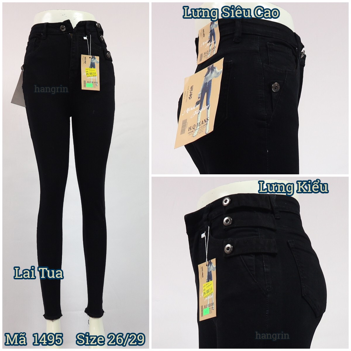 – Quần Jean Nữ Lưng Cao Lai Kiểu Màu Đen Tuyền Size 26 -29 – Chất liệu dày dặn, co giãn rất nhiều – Lưng kiểu, lưng cao, lưng siêu cao, có cúp ngang – Lai tua,
