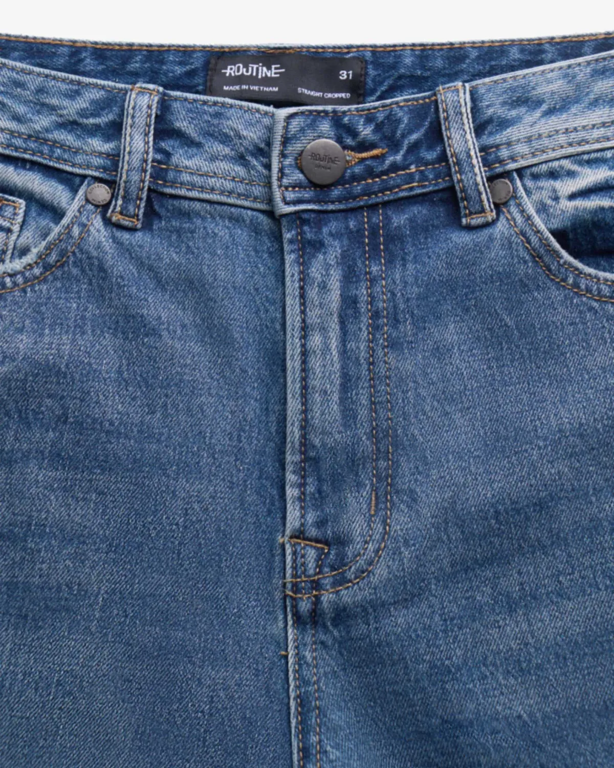 Quần jean / Quần denim nam màu xanh ống suông . Form Straight cropped - ROUTINE 10F24DPA043 | LASTORE MENSWEAR Đặc điểm nổi bật Form : Straight Cropped Fabric : Denim Gender: Nam Sản phẩm