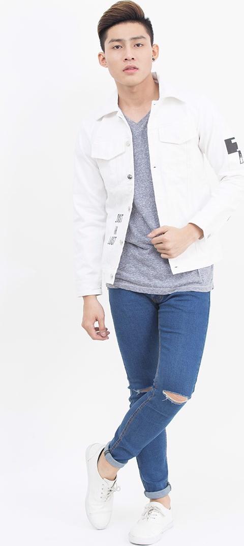 quần jean nam rách gối to tròn lộ zip khóa chận #amily