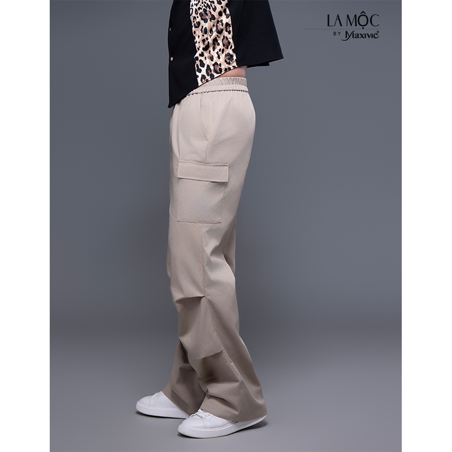 - Chất liệu: Vải polyester lụa - Quần túi hộp màu kem, cạp chun co giãn, form dáng rộng rãi che khuyết điểm tốt, mang lại sự năng động và thoải mái cho người mặc.