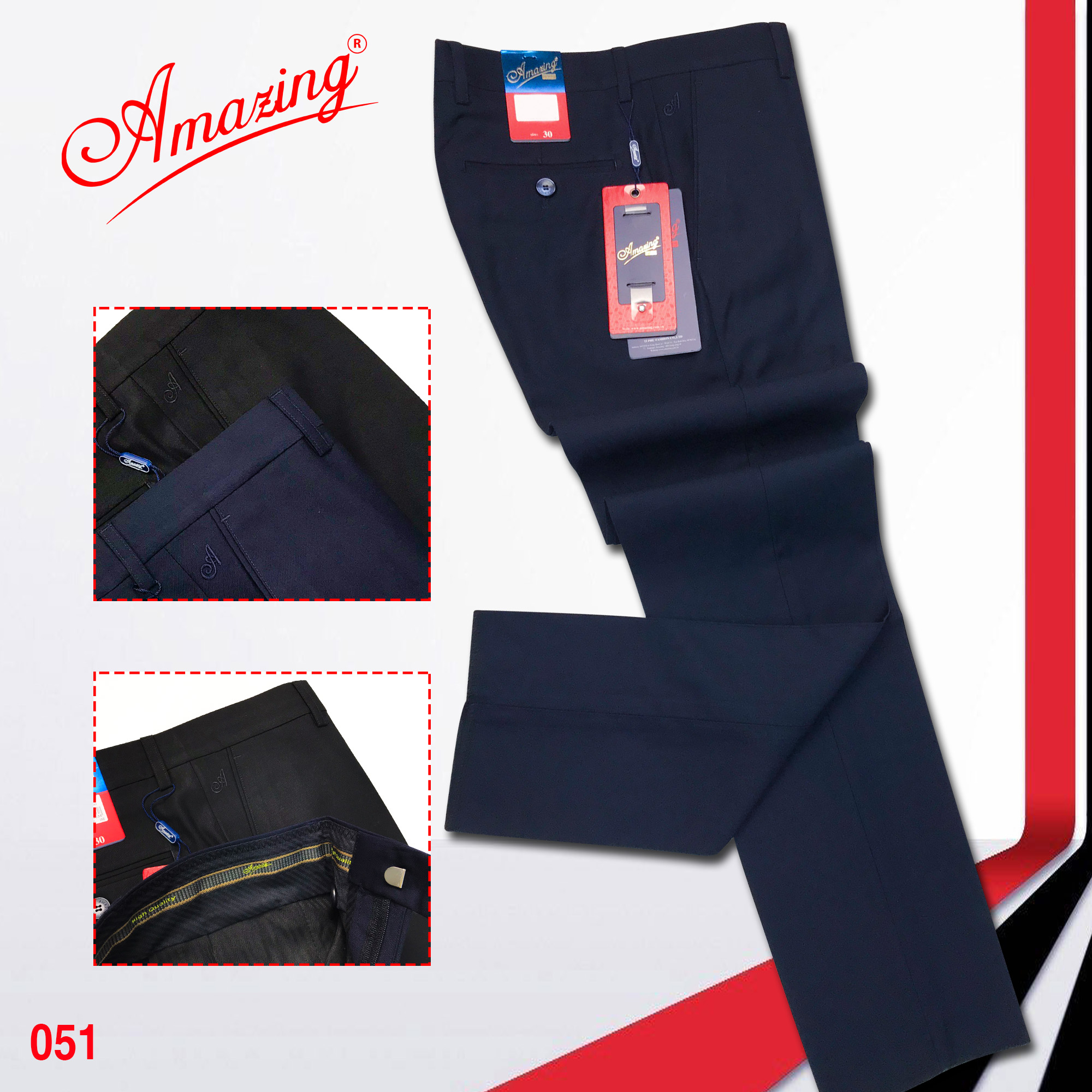 - Quần tây âu Amazing, được sản xuất trên dây chuyền công nghệ cao, tỉ mỉ từng đường kim, mũi chỉ, sắc sảo như may đo.