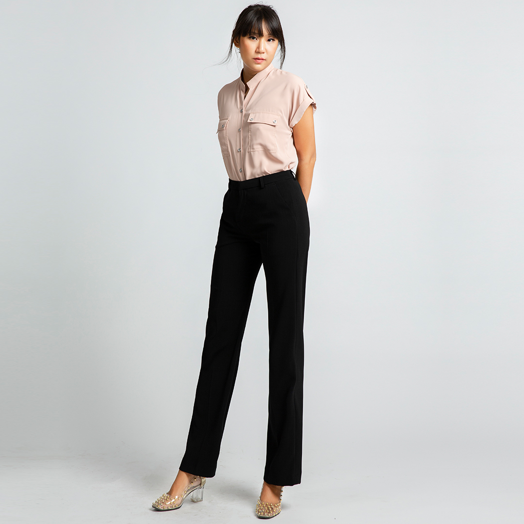 Quần Tây đen, áo sơ mi, áo kiểu chính là sự kết hợp dễ dàng nhất cho phụ nữ dù đi đến bất kỳ đâu. Quần Tây đen luôn phù hợp với bất kỳ công ty nào cho dù quy định trang phục của họ có khắt khe đến đâu.