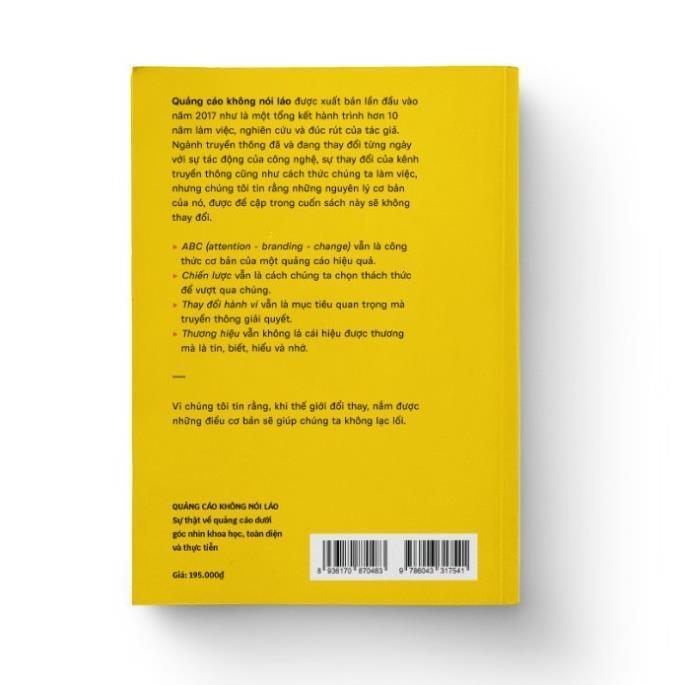 Dù là người mới bước vào ngành đang lạc lối giữa một rừng lý thuyết hay đã có nhiều kinh nghiệm chinh chiến lâu năm, “Quảng cáo không nói láo: sẽ dẫn dắt bạn khám phá thế giới quảng cáo dưới lăng kính khoa học thông qua 5 phần - 10 chương: quảng cáo, thương hiệu, chiến lược, ý tưởng, chuyện nghề.