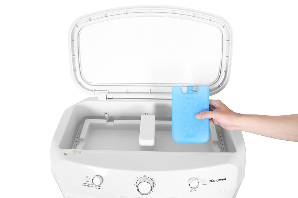 - Đi kèm 2 đá khô nâng cao hiệu suất làm mát. Đây là 1 loại đá hóa học, khi muốn làm lạnh, bạn cho nó vào ngăn đá tủ lạnh (đá này có thể tái sử dụng) rồi đặt vào bình chứa nước, đá khô sẽ làm lạnh nước cho hơi nước tỏa ra mát sâu hơn.