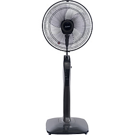 Mô tơ không chổi than DC bền bỉ tiết kiệm điện. ·        Điều chỉnh hướng gió lên xuống. ·        Có thể đặt nhiều tốc độ khác nhau và có điều khiển. ·        Ba cánh quạt bằng nhôm. ·        Thiết kế hình tròn dáng cái trống bằng kim loại. ·        Lồng quạt hình xoáy lò xo. ·        Đế quạt bằng kim loại chắc chắn kèm chân chống đổ. ·        Nguồn điện vào: 220-240V, 50/60Hz. ·        Nguồn ra: DC 12.6V, 1.5A. ·        Công suất: 25W.