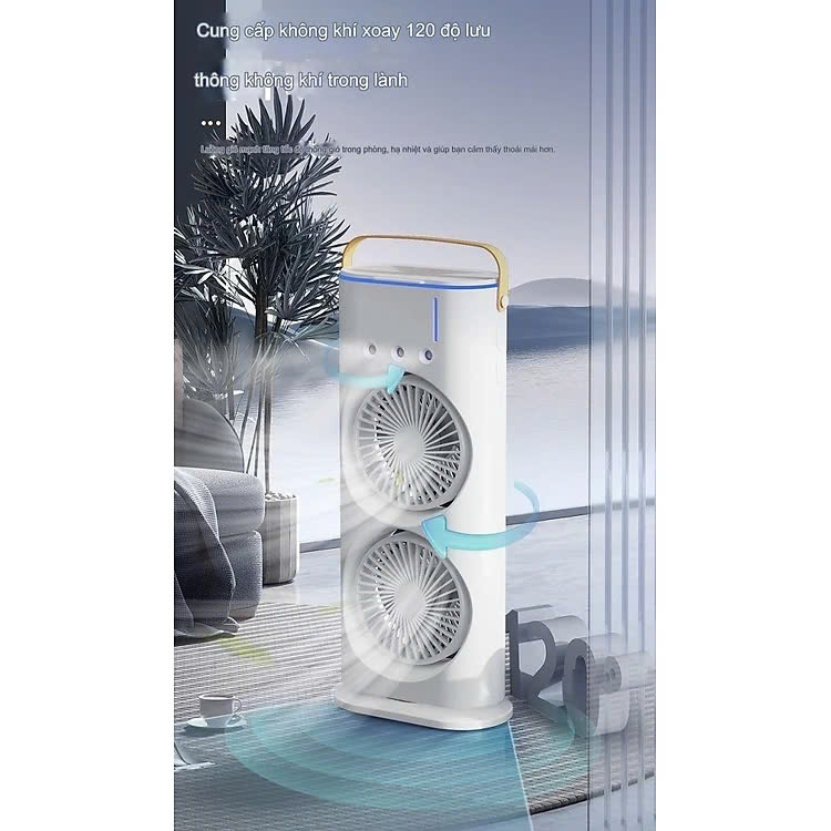 Quạt điều hoà hơi nước mini cool fan, quạt hơi nước làm mát phun sương để bàn 3 chế độ gió, dung tích bình lớn tích hợp đèn led, quạt phun sương mini để bàn