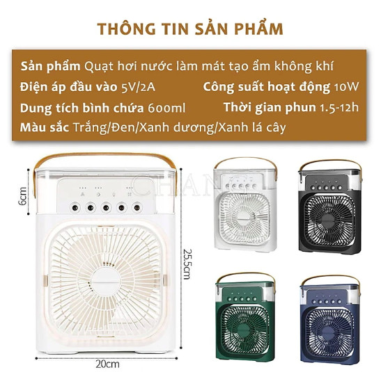 THÔNG SỐ KỸ THUẬT- Chất liệu vỏ: Nhựa ABS + PC cao cấp + Linh kiện điện tử- Kích thước:  18 * 8 * 25.5cm- Điện áp: 5v- Công suất: 3-10W- Công suất làm mát: 500W- Dung tích bình chứa nước: 680 ml...
