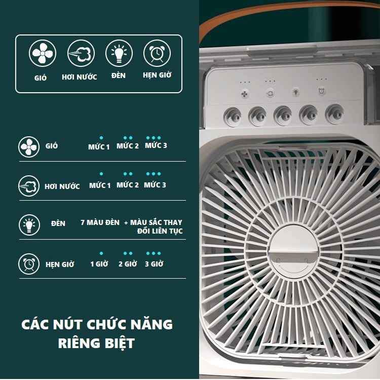 - Quạt hơi nước mini làm mát không khí với khả năng làm mát và giữ ẩm không khí, căn phòng của bạn sẽ luôn là một nơi lý tưởng để nghỉ ngơi, thư giãn. Có thiết kế hiện đại, trang nhã làm nổi bật thêm không gian căn phòng.