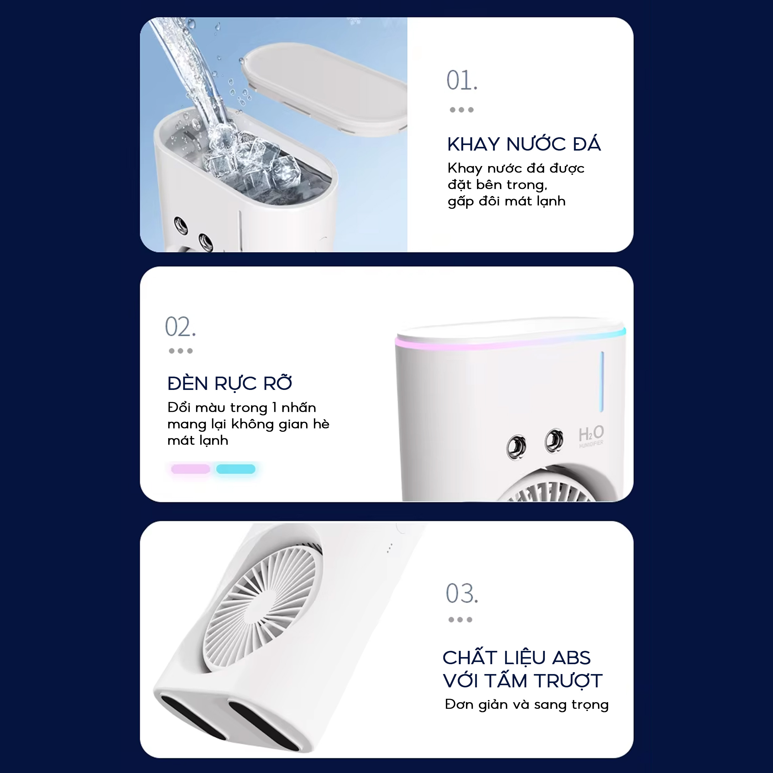 Quạt điều hoà hơi nước mini cool fan, quạt hơi nước làm mát phun sương để bàn 3 chế độ gió, dung tích bình lớn tích hợp đèn led, quạt phun sương mini để bàn