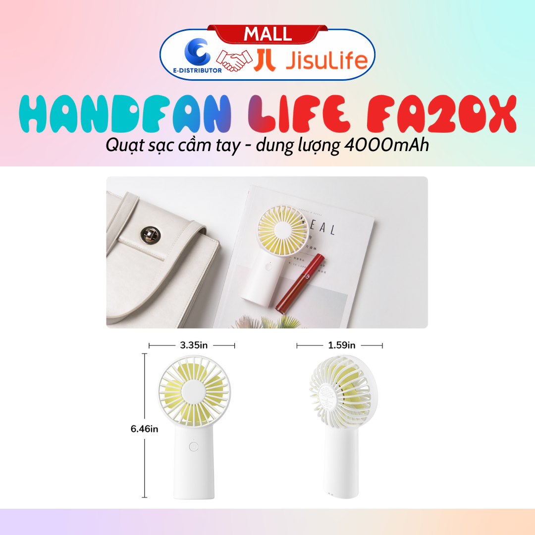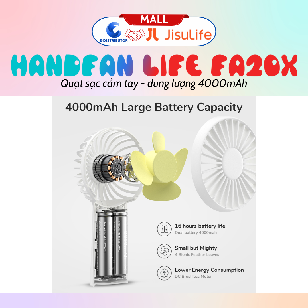 - JISULIFE HandFan Life3 là một sản phẩm của thương hiệu JISULIFE, nổi tiếng với chất lượng và độ tin cậy. Với thiết kế gọn nhẹ và nhiều tính năng tiện ích, đây là một lựa chọn hoàn hảo cho mùa hè.