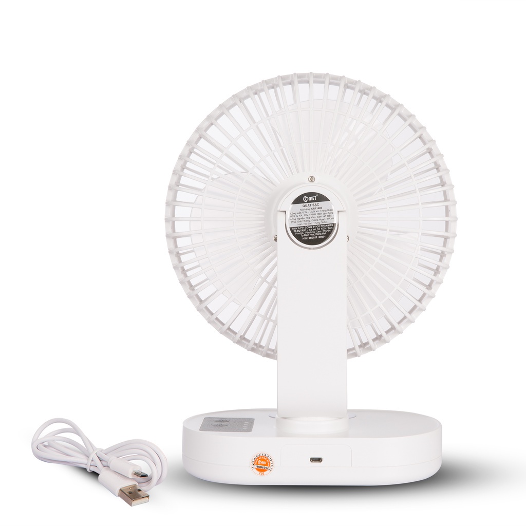 - Quạt văn phòng Comet CRF1406 có cổng sạc bằng đầu USB tiện dụng, dễ dàng sạc lại cho quạt bằng cách: