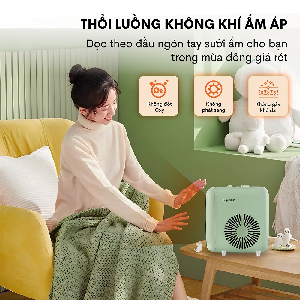 Quạt sưởi ấm mini nhập khẩu FUJIHOME - Công nghệ Nhật Bản BẢO HÀNH TOÀN 24 THÁNG TOÀN QUỐC [ KHÔNG ĐỐT OXI - LÀM ẤM NHANH 5S ] >>> Sử dụng phù hợp phòng