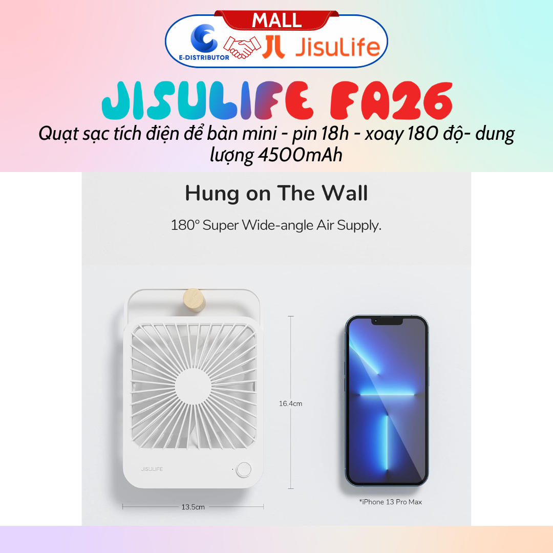 Mua tại TiktokQuạt tích điện mini để bàn Jisulife FA26 - pin 4500mah pin 18 giờ, xoay 180 độ - Hàng chính hãng