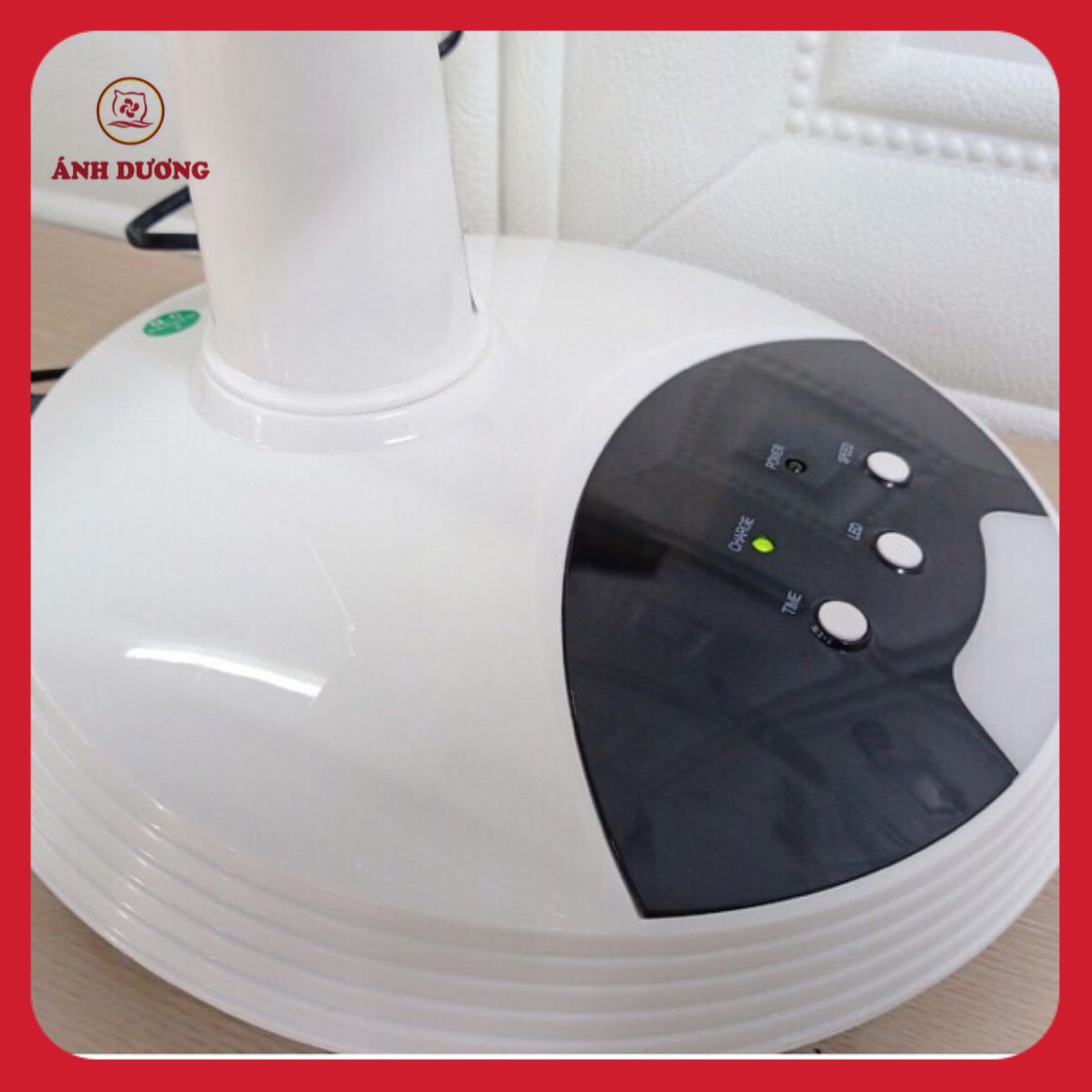 - An toàn – Tiện lợi Sản phẩm có hai chế độ sử dụng là AC (dùng khi cắm điện và không sử dụng chế độ sạc) và DC (dùng khi mất điện), rất tiện lợi cho người sử dụng. Ở chế độ AC, quạt sẽ vừa chạy như quạt điện thông thường vừa sạc vào, lúc này đèn báo đỏ. Khi pin đã đầy, đèn sẽ chuyển sang màu xanh và tự động ngắt, giúp kéo dài tuổi thọ của pin. Quạt còn có tính năng bảo vệ khi quá tải giúp an toàn cho người sử dụng.