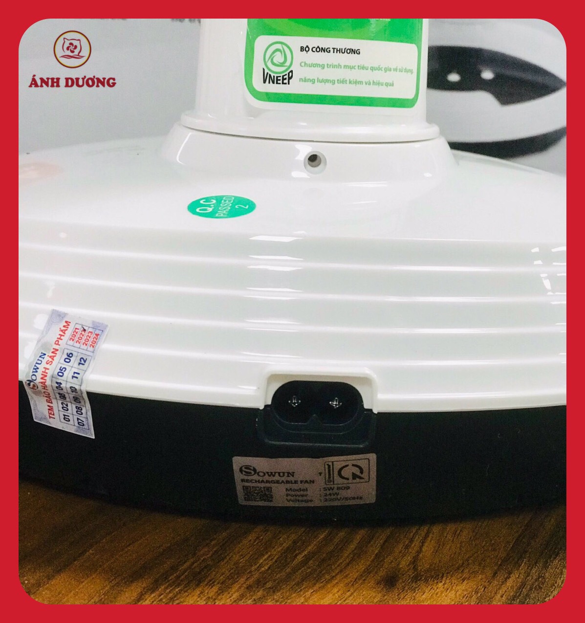 - Quạt sạc điện Sowun SW 809 sử dụng pin sạc 6V – 7.0Ah, có khả năng dự trữ điện năng sử dụng khi mất điện. Đây là loại pin chất lượng cao nên bạn yên tâm sử dụng lâu dài. Quạt có 3 tốc độ gió nhẹ vừa và mạnh, thời gian sử dụng pin khoảng 5 tiếng (tùy chế độ sử dụng), đảm bảo cho bạn có giấc ngủ ngon ngay cả khi mất điện.