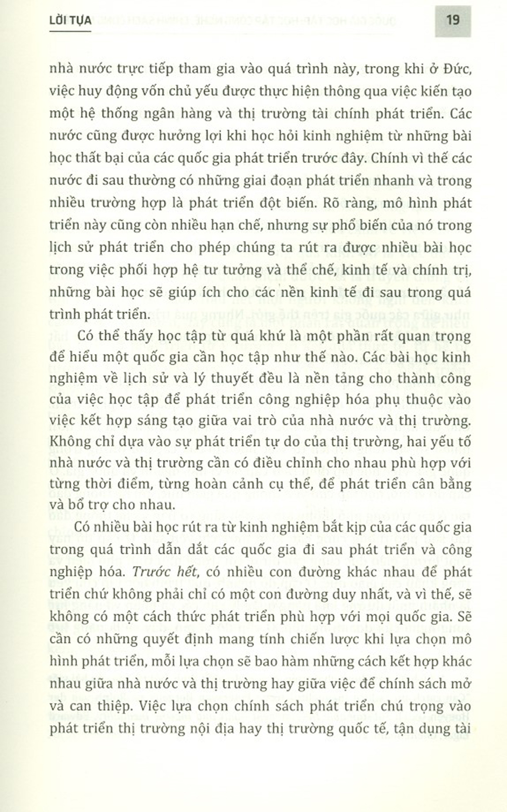 “ Cuốn sách này đưa ra một số kinh nghiệm của các quốc gia về học tập và bắt kịp, vị trí xuất phát khác nhau của các quốc gia và mức độ áp dụng phù hợp các phương thức đối với các quốc gia đi sau. Trong đó, đặc biệt nhấn mạnh đến mối quan hệ xảy ra trong quá trình học tập công nghệ và chính sách, quá trình bắt kịp; định hình và tính toán tốc độ và mục tiêu bắt kịp; nguyên nhân một số quốc gia bắt kịp một cách nhanh chóng, dễ dàng, trong khi một số quốc gia khác lại gặp phải những khó khăn trong vấn đề học tập và bắt kịp. Đây là các nội dung có ý nghĩa hết sức quan trọng đối với các nhà hoạch định chính sách trong việc "khơi nguồn cảm hứng” và các bài học chính sách cụ thể đối với các quốc gia đi ".